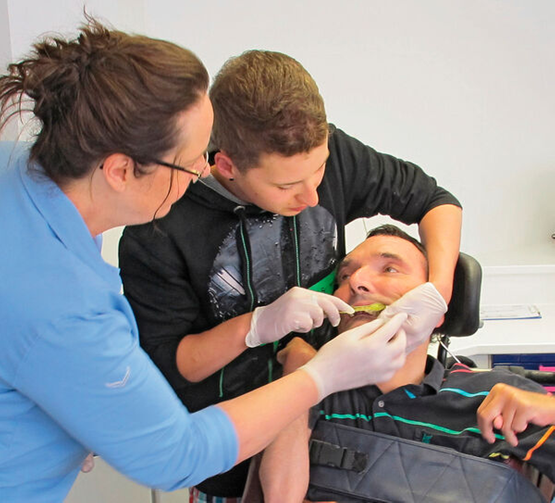 Für eine berufsübergreifende Zusammenarbeit bei der Versorgung der beeinträchtigten Patienten setzt sich die Deutsche Gesellschaft für Medizin für Menschen mit geistiger oder mehrfacher Behinderung (DGMGB) ein – ein Zusammenschluss von Ärzten, die schwerpunktmäßig mit diesen Patienten arbeiten. Ein großes Thema dort: die zahnmedizinischen Bedarfe. Die zahnmedizinische Versorgung dieser Patienten ist (immer noch) schlechter als die der Allgemeinbevölkerung. Deshalb hat der Verband eine Sektion Zahnmedizin gegründet.
