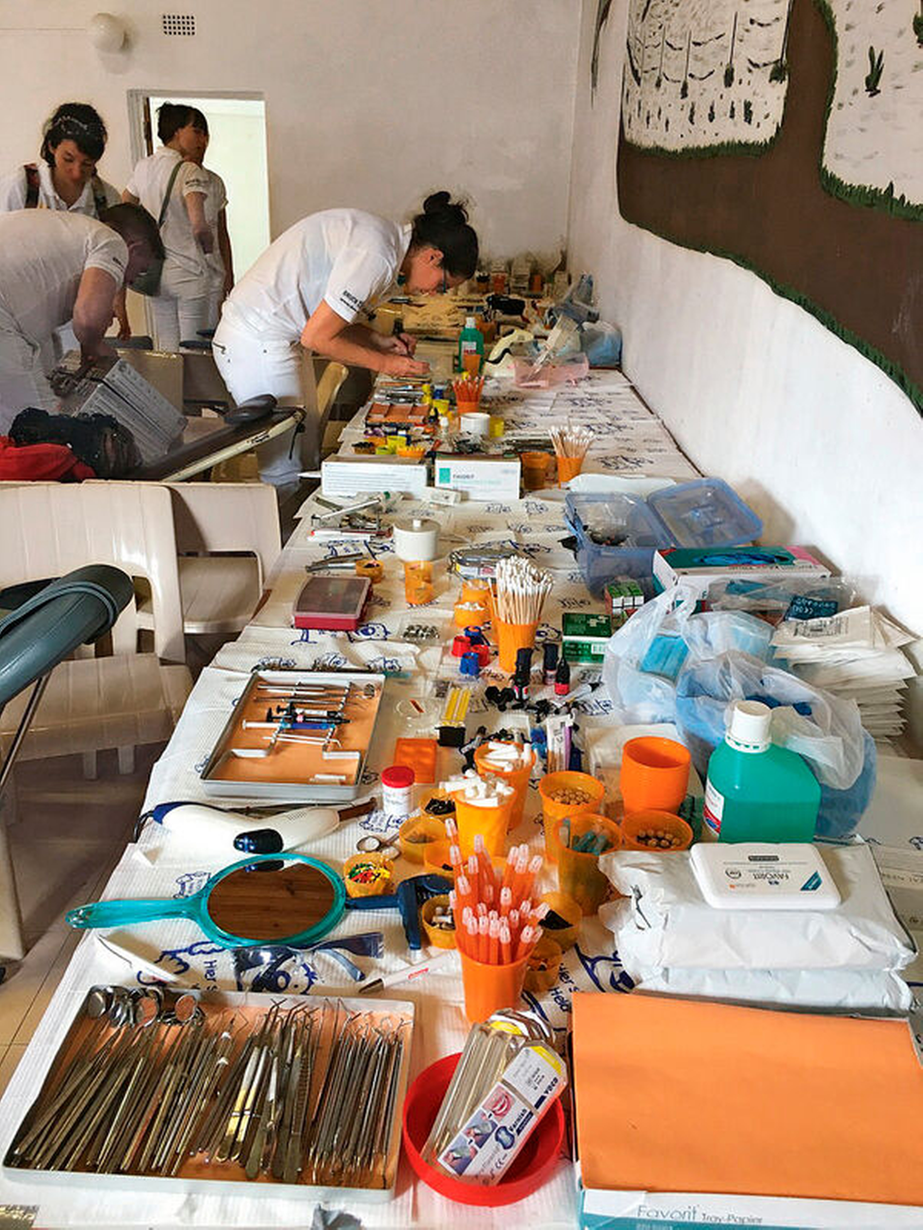 Der Verein Big Smile e. V. unterstützt unser Projekt finanziell. Auf ein kleines Repertoire an zahnärztlichem Equipment aus den vergangenen Jahren und die extra aus dem Gesundheitsministerium des Provinzkreises gelieferten mobilen Zahnarzteinheiten können wir zurückgreifen. Außerdem brachten wir kiloweise Verbrauchsmaterial aus Deutschland mit. Trotzdem müssen wir viel improvisieren!