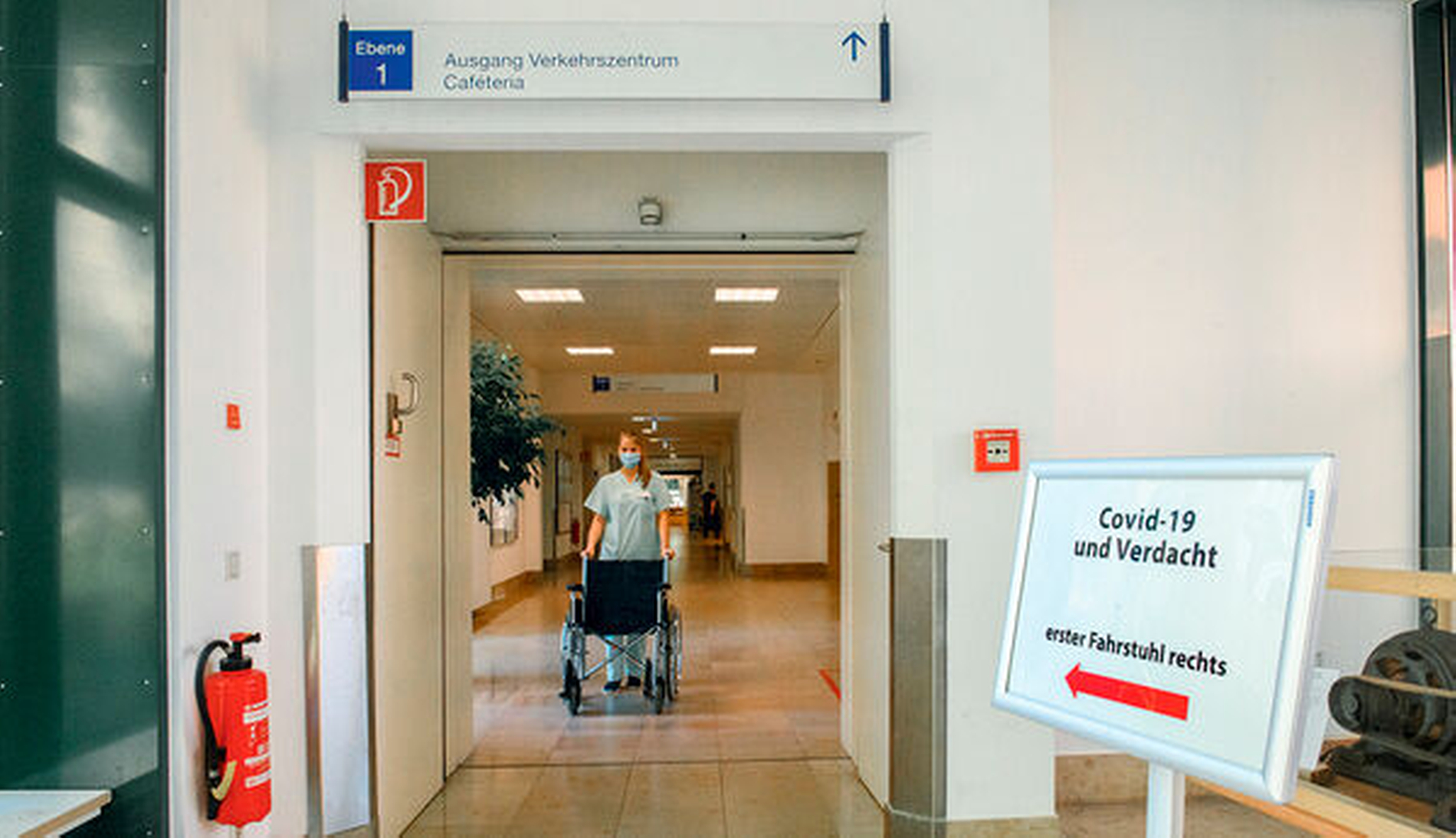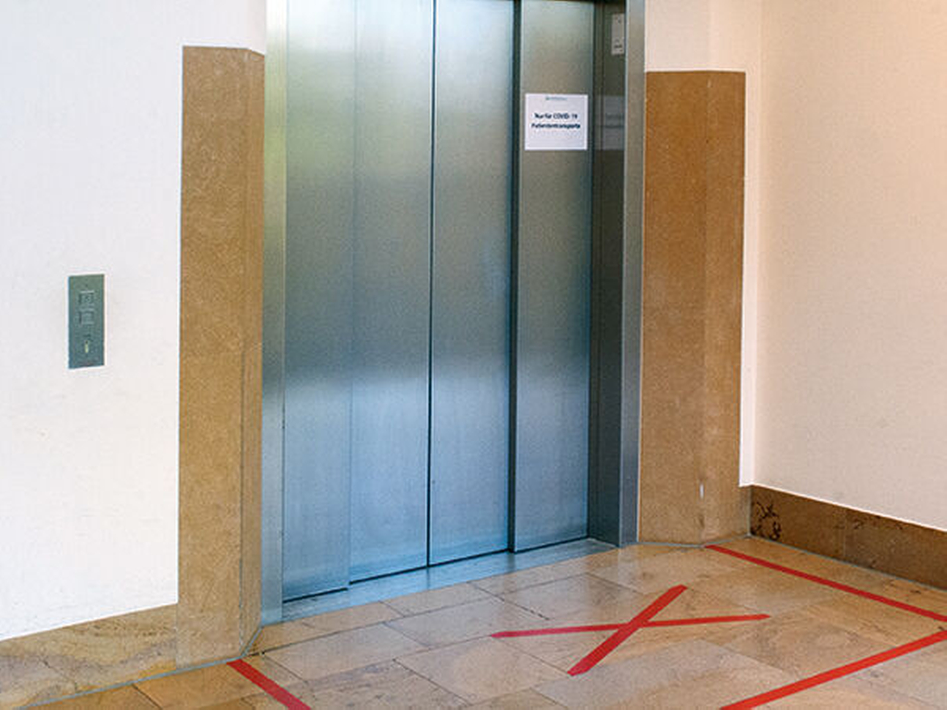 Für jeden neuen positiv getesteten oder potenziell infizierten Patienten gibt es ein nach den Hygiene-Richtlinien entwickeltes Wegekonzept auf die Isolierstationen. Es führt über eine separate Anfahrt, Laufwege und einen extra Fahrstuhl zu den Stationen, auf denen für die zahnmedizinische Behandlung ein separater Computertomograf und ein separater Operationssaal samt eigener Schleuse zur Verfügung stehen.