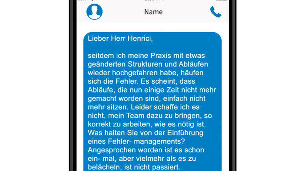Wenn Sie in Ihrer Praxis viele Abläufe auf der Grundlage der gesetzlichen Vorgaben und den Gegebenheiten der Praxis in Arbeitsanweisungen und Checklisten definiert haben, haben Sie eine gute Basis, um die Fehler zu erkennen. Natürlich muss allen Mit-arbeitern klar sein, dass trotz guter Organisation Fehler auftreten können. Machen Sie Ihren Mitarbeitern immer wieder klar, dass Fehler Chancen und durch einen sachlichen und konstruktiven Umgang schnell zu identifizieren und beheben sind. Die Grundlage für den Umgang mit Fehlern sind die Kritikfähigkeit und Lernbereitschaft jedes Einzelnen.