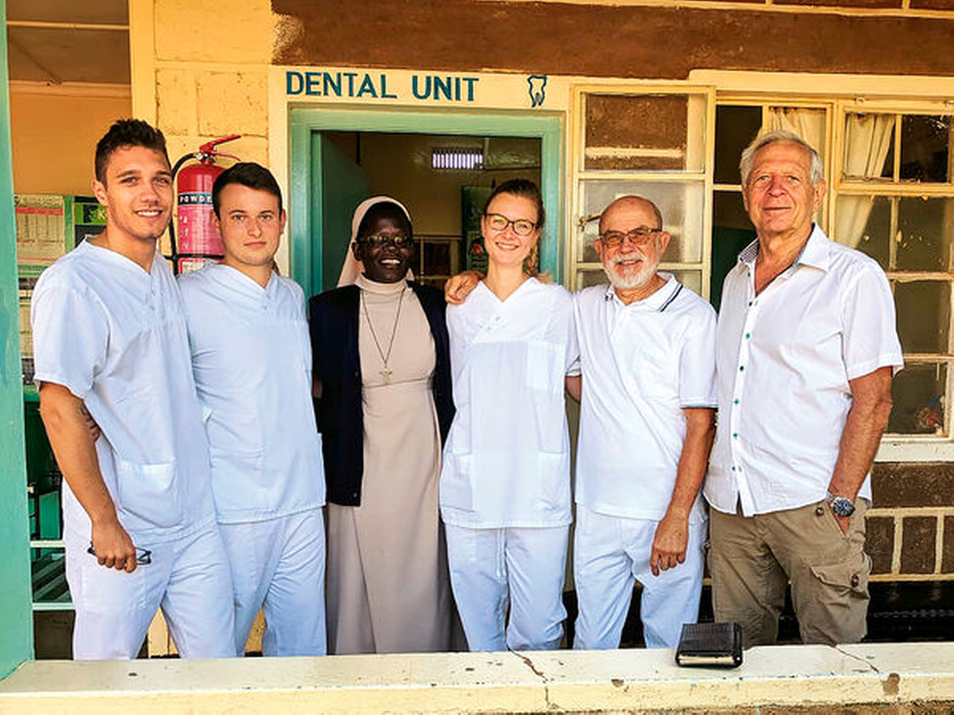 Das Krankenhausgelände des St. Joseph Hospitals, auf dem sich die Dental Unit befindet, wurde für die kommenden drei Wochen unser Zuhause. Hier trafen wir auf die deutschen Zahnärzte Rolf Austermann und Dr. Bernhard Maidusch sowie unsere vier kenianischen Kollegen – zwei Oral Health Officer, ein Zahntechniker und eine Schwester. Obwohl das Aufgabenfeld in Kenia nicht so klar definiert ist, wie wir es aus Deutschland gewohnt waren, entwickelte sich schnell ein eingespieltes Team. Bernhard Maiduschs langjährige Erfahrung mit ehrenamtlicher Tätigkeit im Ausland half uns hierbei enorm.