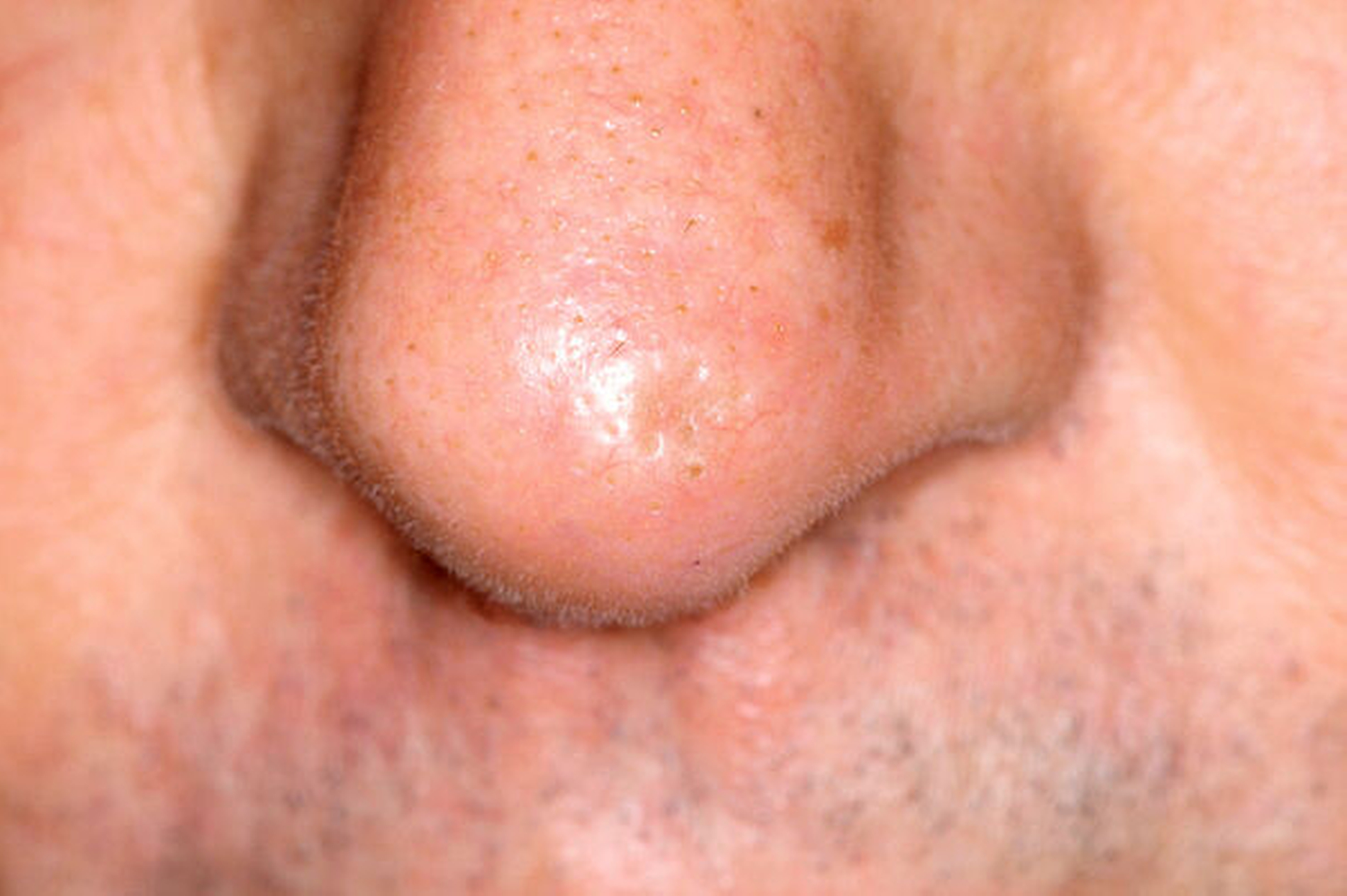 Der Hauptrisikofaktor für Basalzellkarzinome ist die intermittierende und im Lebensverlauf kumulierte Belastung der Gesichtshaut durch ultraviolette Strahlen, wobei die Quelle – Solarium oder natürliche Strahlung – keine Rolle spielt. Daneben sind ein Radioderm mit jahrzehntelanger Latenz nach ionisierender Bestrahlung und eine Arsenbelastung als Risikofaktoren bekannt. Im Gesicht sind die Augenregion, Nase, Wange und Ohr am stärksten betroffen (Abbildungen 1 bis 4). Der häufigste klinische Subtypus des Basalzellkarzinoms ist das knotig, örtlich begrenzt wachsende ulzerierende Basalzellkarzinom, das einige typische Charakteristika aufweist und gut diagnostizier- und behandelbar ist.
