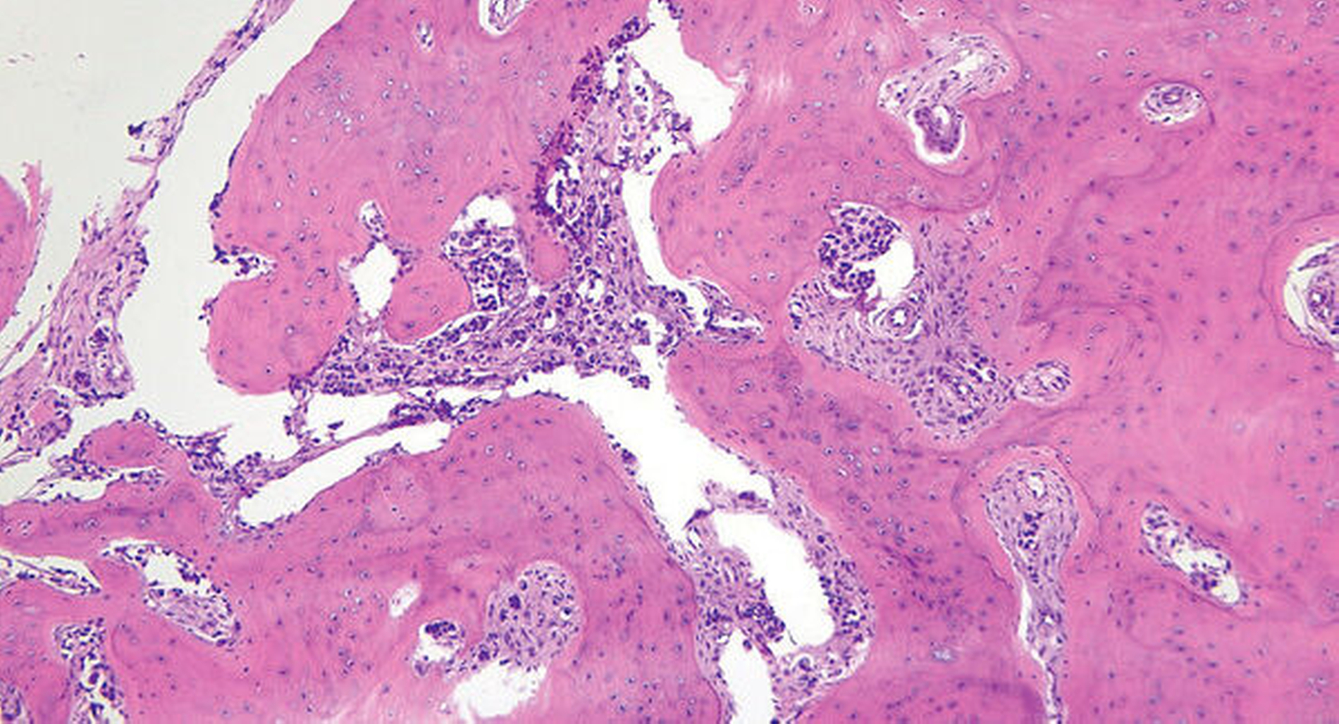 Eine Fernmetastasierung in den Knochen findet sich bei 65 bis 70 Prozent der Patienten mit Brustkrebs [Coleman, 2011]. Dies beruht auf den intrinsischen Tumorzelleigenschaften des Primärtumors [Weigelt et al., 2005], die das Knochenremodeling beeinflussen und eine Dysbalance zwischen Osteoblasten und Osteoklasten hervorrufen können [Salvador et al., 2019]. Der Kieferknochen, respektive der Gesichtsschädel, ist zu etwa zwei Prozent betroffen, wobei hier der Unterkiefer deutlich häufiger als der Oberkiefer betroffen ist. Die Prävalenz von Metastasierungen in die Wirbelsäule liegt bei 18 Prozent [Dib et al., 2007].