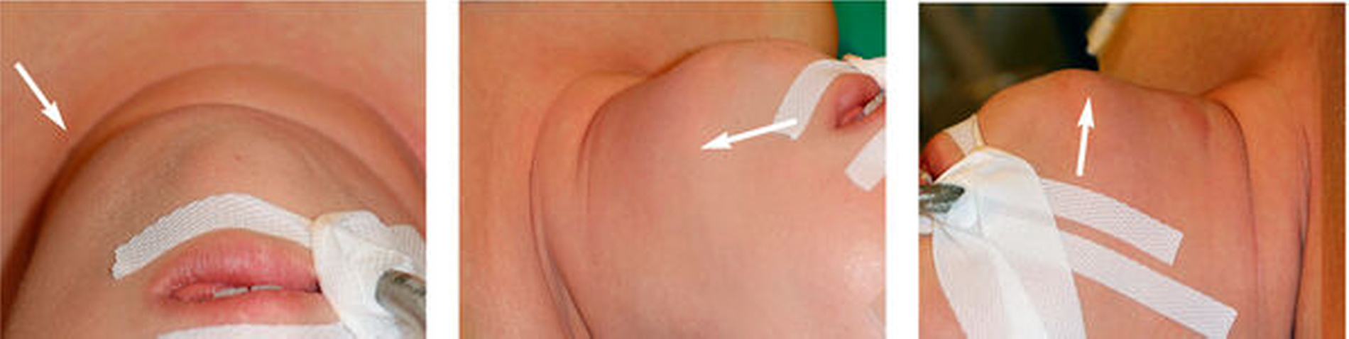 Klinisch war eine deutliche, etwas linksbetonte Schwellung von submental bis zur Klavikula reichend zu beobachten (Abbildung 1). Zum Vorstellungszeitpunkt beklagte die Patienten Schmerzen, Schluck- und beginnende Atembeschwerden. In der klinischen Untersuchung zeigte sich ein konservierend versorgtes, vollständiges Gebiss. Keiner der Zähne war gelockert, perkussionsempfindlich oder avital. Neben dem fehlenden Zahnfokus war außerdem weder ein Speichelsee noch eine von enoral sichtbare Mundbodenschwellung auszumachen. Die Ausführungsgänge sämtlicher Speicheldrüsen zeigten sich unauffällig und förderten klares Sekret; eine Okklusionssymptomatik wurde verneint. Außer einer Neurodermitis war die Allgemeinanamnese der Patientin leer.
