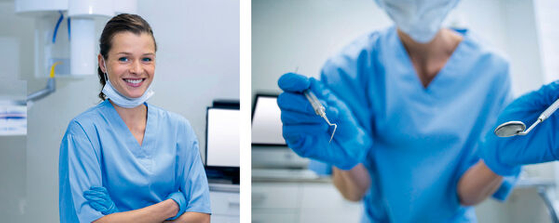 Ich bin 18 Jahre alt und im zweiten Ausbildungsjahr zur ZFA. In unserer Praxis sind wir mit den Ärzten insgesamt 80 Beschäftigte, es gibt 20 Behandlungszimmer.