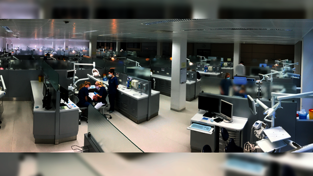 In München wird in beiden Kurssälen mit jeweils 40 Behandlungseinheiten weiter am Patienten behandelt, erklärt Hickel. „Unsere Voraussetzungen sind aber auch vergleichsweise gut. Bei uns waren die Einheiten schon vor der Pandemie baulich durch hohe Glaswände voneinander getrennt.“ Als zusätzliche Sicherheitsmaßnahme erfolgt die praktische Lehre aktuell im Schichtbetrieb. So sei zu jedem Zeitpunkt sichergestellt, dass zeitgleich nur jede zweite Einheit im Kurssaal belegt ist. Hickel: „Das gilt auch für unseren Phantomkurs, damit nicht ein positiver Fall das gesamte Semester ausknockt.“