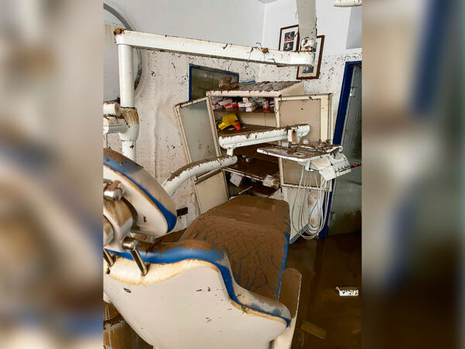 Im 25. Jahr lief seine Praxis mit drei Behandlungszimmern und eigenem Labor „richtig gut“ und war dank ständiger Modernisierungen auch bestens ausgestattet. Heute ziert stattdessen eine braune Wasserstandsmarke in knapp zwei Metern Höhe die vollkommen verwüsteten Räume. Möbel, Geräte und Boden sind zentimeterdick von einem mit Öl und Schwermetallen kontaminierten Schlamm bedeckt.