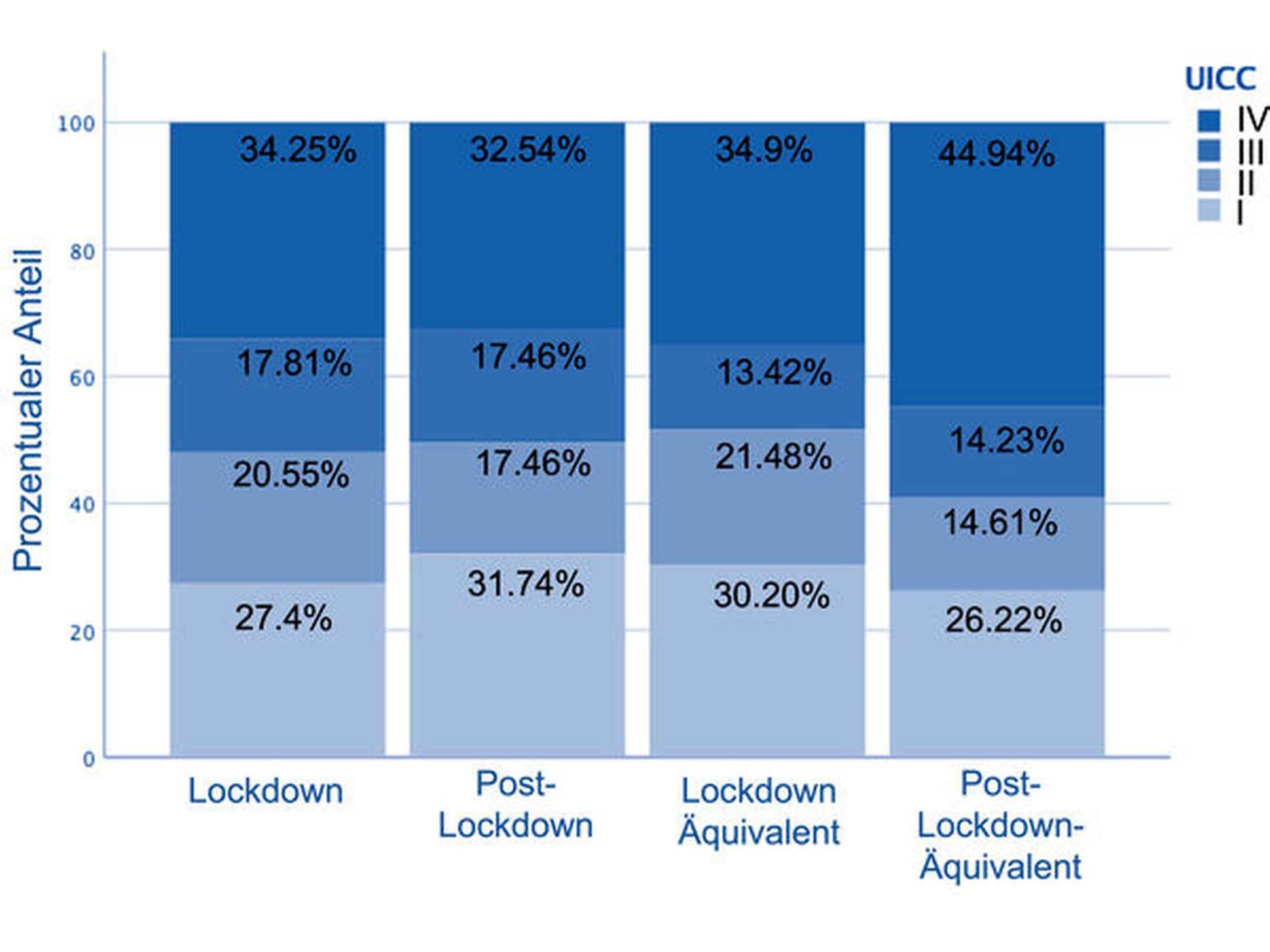 Zahlreiche Studien aus anderen Ländern lassen eine erhöhte Inzidenz von Krebserkrankungen in Zusammenhang mit der COVID-19-Pandemie vermuten [Arduino et al., 2020; Jacob et al., 2021; Krebsregister Belgien, 2020], jedoch fehlten bislang Daten aus Deutschland, die eine Untersuchung des Themas ermöglichen. Mittels einer multizentrischen Kohortenstudie der Universitätskliniken aus Mainz, Kiel und Berlin, die insgesamt über 600 Patienten einschloss, wurden die Auswirkungen der Pandemie auf die Krankenversorgung und Krankheitsstadien bei Patienten mit Mundhöhlenkarzinomen untersucht.