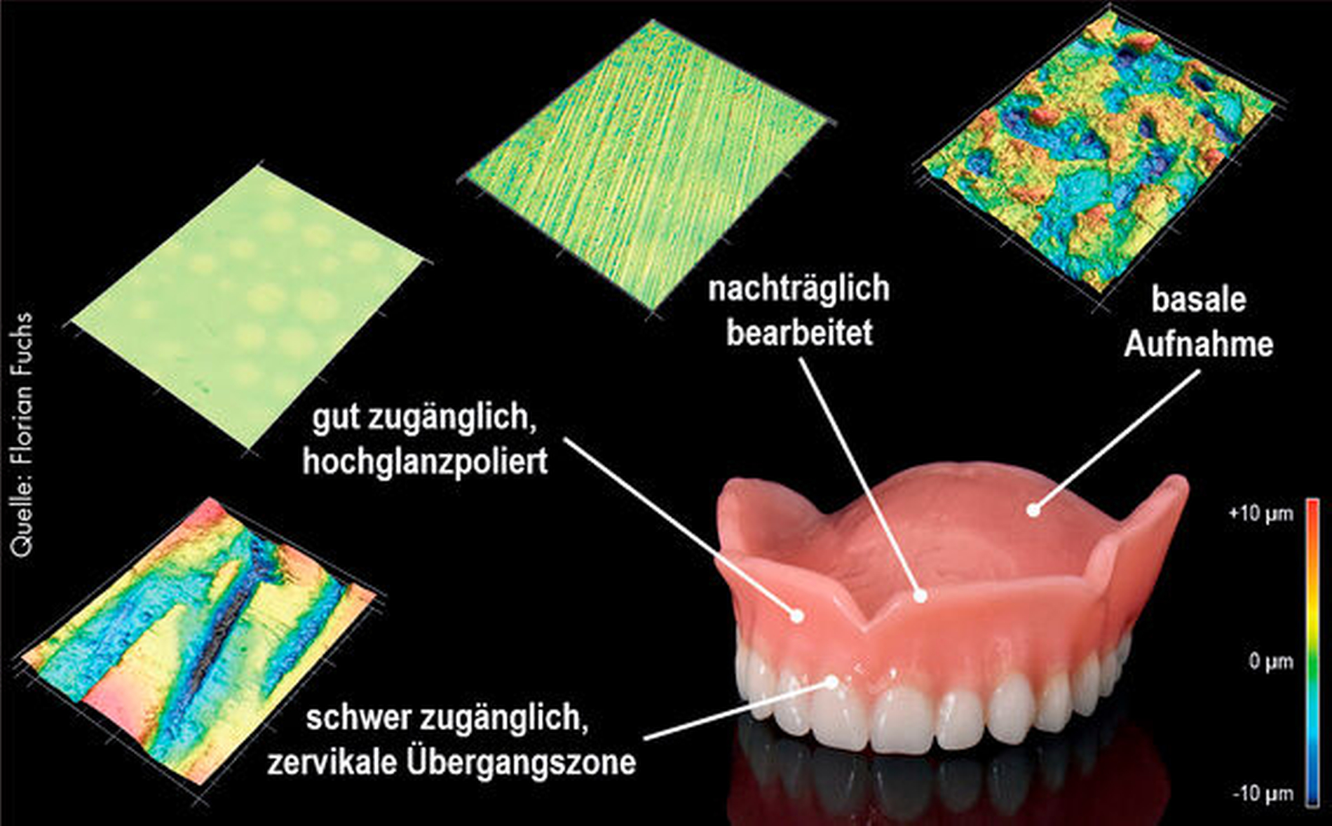 Dabei ist zu beachten, dass die Untersuchungen zur Bioadhärenz auf dentalen Werkstoffen nicht unbedingt immer miteinander vergleichbar sind, da die Ergebnisse stark vom Design der Untersuchung abhängen. Allgemein gilt jedoch, dass Mikroorganismen vermehrt an raue Werkstoffe adhärieren. Materialunebenheiten wie Porositäten, Kratzer, Lücken und Frakturen können von Speichelproteinen benetzt und teilweise kaschiert werden. Diese Pellikelschicht reduziert die Rauigkeit des Werkstoffs signifikant. Allerdings ist dieser Effekt auf besonders rauen Oberflächen weniger deutlich ausgeprägt.