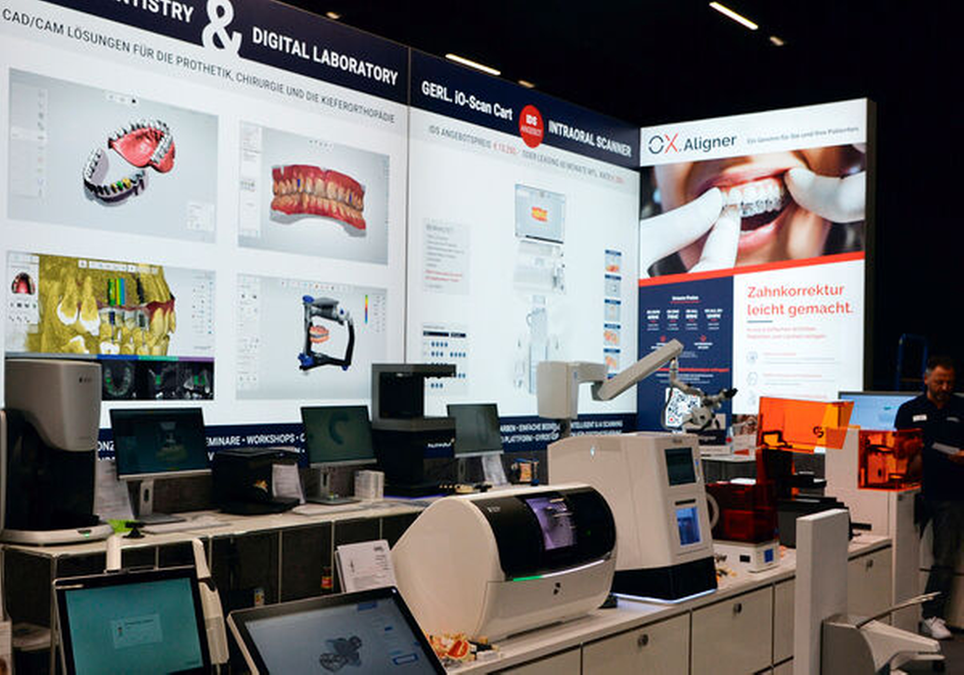 Das Angebot an Chairside-Restaurationssystemen mit den dazugehörigen Geräten, Software-Produkten und Materialien nimmt weiter zu. In Abwesenheit des Platzhirsches Dentsply Sirona präsentierte die zu der US-amerikanischen Firma Align Technologies gehörige Software-Schmiede Exocad in großem Rahmen seine Diagnostik-, Planungs- und Design-Produkte für zahn- und implantatgetragene Versorgungen. Besonderes Merkmal ist nach dem in Darmstadt gegründeten und aus dem Laborbereich kommenden Anbieter die Offenheit für über 100 externe Produktsysteme. Das Ziel sei eine „offene Plattform für die gesamte Zahnheilkunde“.