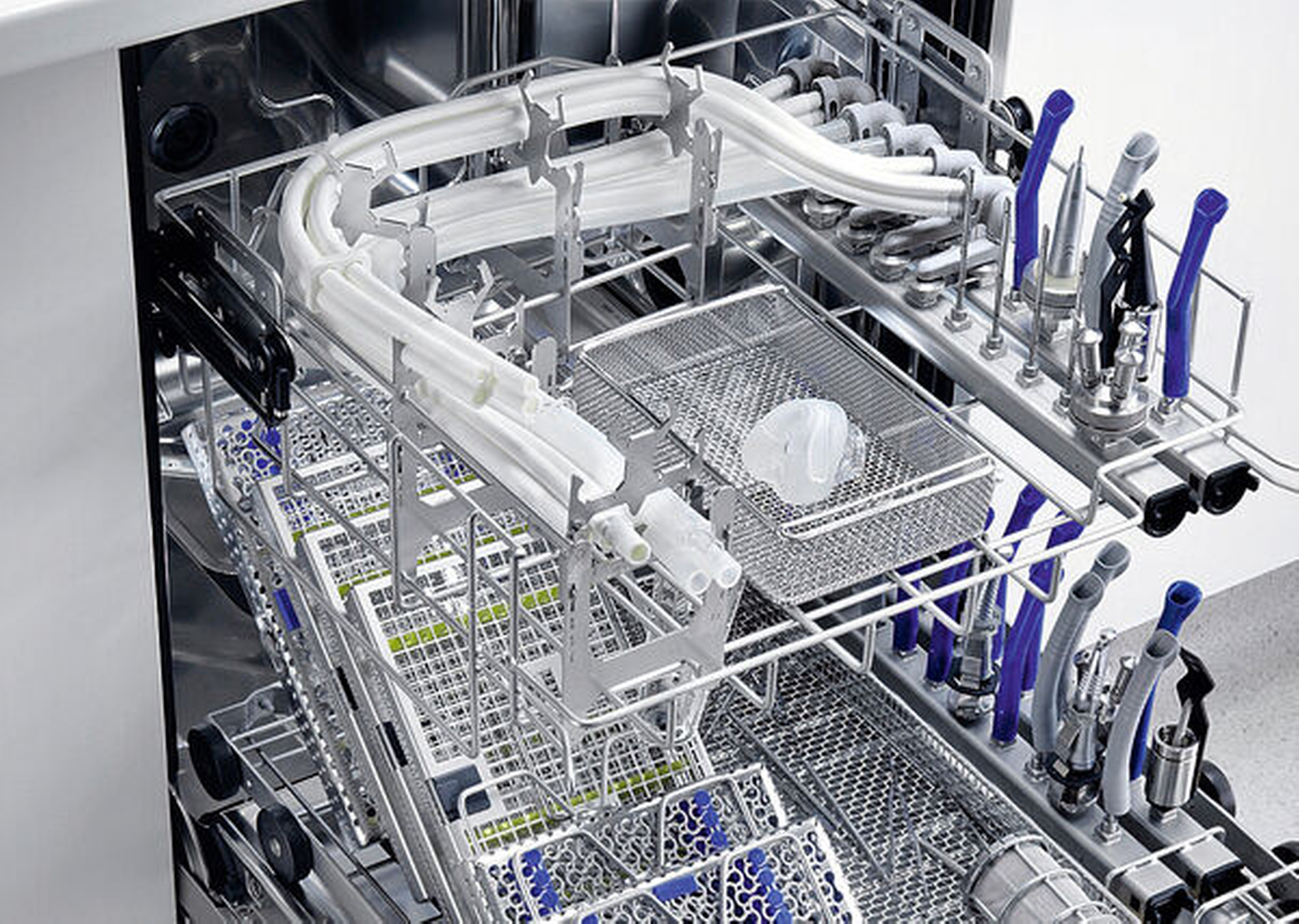 Das Thema Hygiene war auf der Messe mit einigen der großen Anbieter besser besetzt. So wurden an einem ungewöhnlich kleinen Stand neue Adapter für Thermodesinfektoren gezeigt (Miele, Abbildung 12). Der Andrang war dort nach Auskunft des deutschsprachigen Standpersonals zeitweise groß, primär allerdings von internationalen Besuchern. Für eine reduzierte Aerosol-Freisetzung wurden weitere Neuheiten vorgestellt, zum Beispiel durch Wegschalten der Luftzufuhr bei Winkelstücken (NSK) oder durch ein extraorales Absaugsystem (Sycotec). Eine geringere Virenlast bei der Behandlung bewirken geeignete Mundspüllösungen, die damit sowohl für die Patienten als auch fürs Praxisteam nützlich sind. Zu achten ist auf Wirksamkeitsnachweise mit PCR-Tests [Barfuß, 2021].