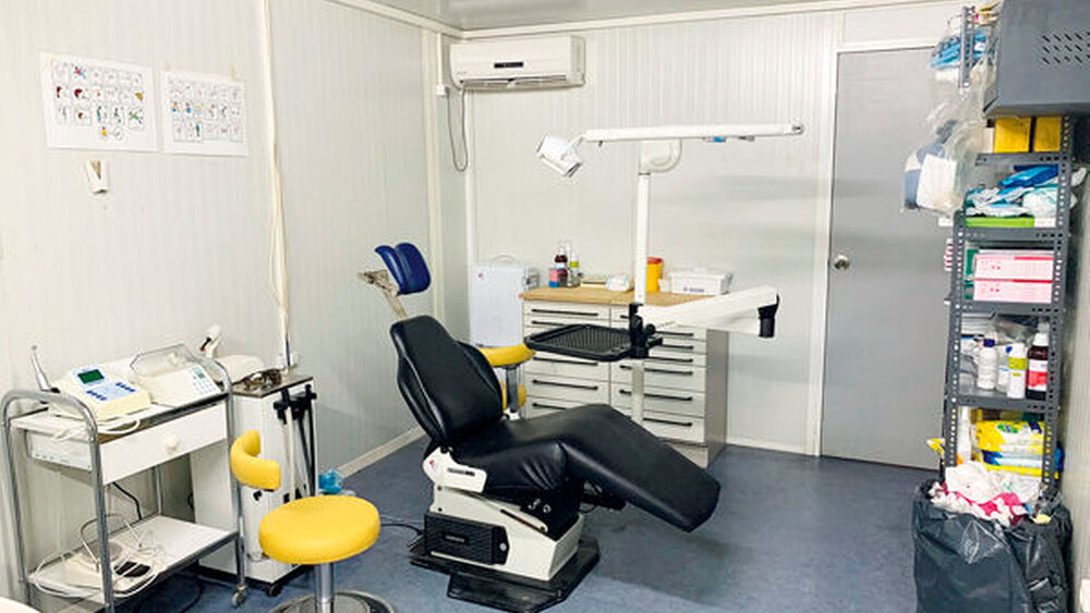 Wir installierten einen Behandlungsstuhl mit OP-Leuchte, bauten eine autarke mobile Dentaleinheit und eine Stand-Alone-Absaugung auf und alles weitere, was zu einer zahnärztlichen Notfallpraxis gehört. Selbstverständlich setzten wir auch ein entsprechendes Hygienekonzept mit manueller Aufbereitung und Sterilisation um. Bereits zwei Tage später konnten Ann Christin Schafigh und Wildhagen mit der Behandlung der Geflüchteten beginnen.