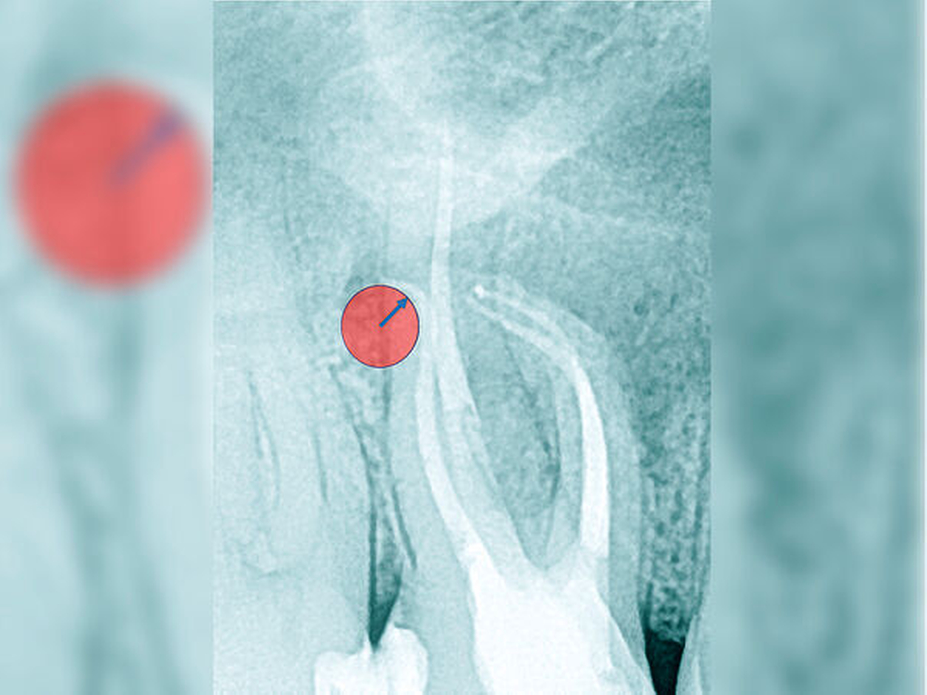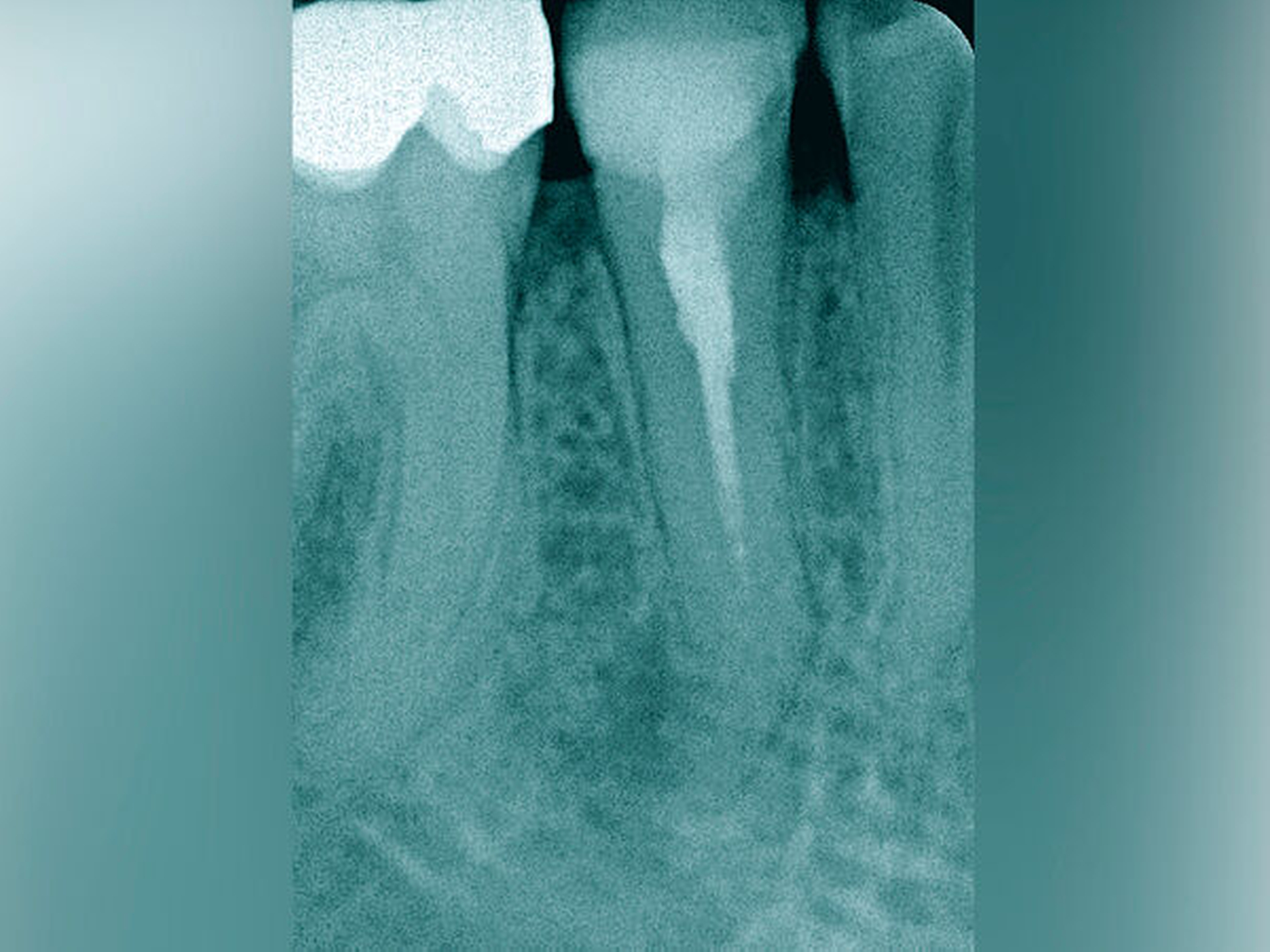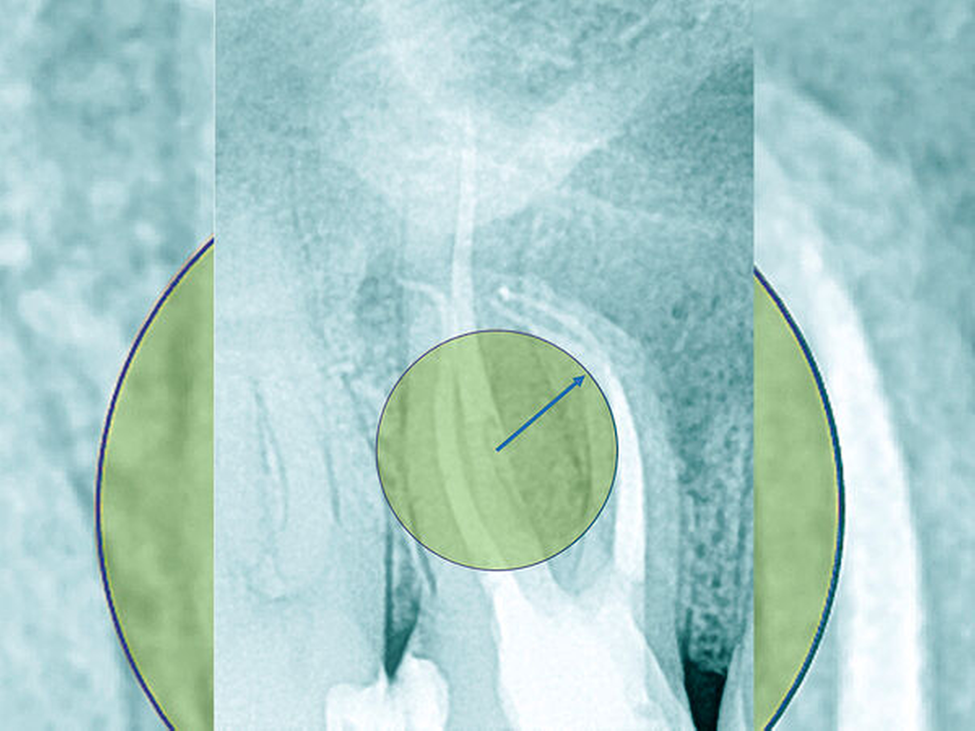 Lässt sich der Wurzelkanal auf der Röntgenaufnahme nur apikal erkennen, liegt meist eine Kalzifikation der Pulpa vor, die häufig erst unter Nutzung einer optischen Vergrößerung überwunden werden kann [Kiefner et al., 2017].