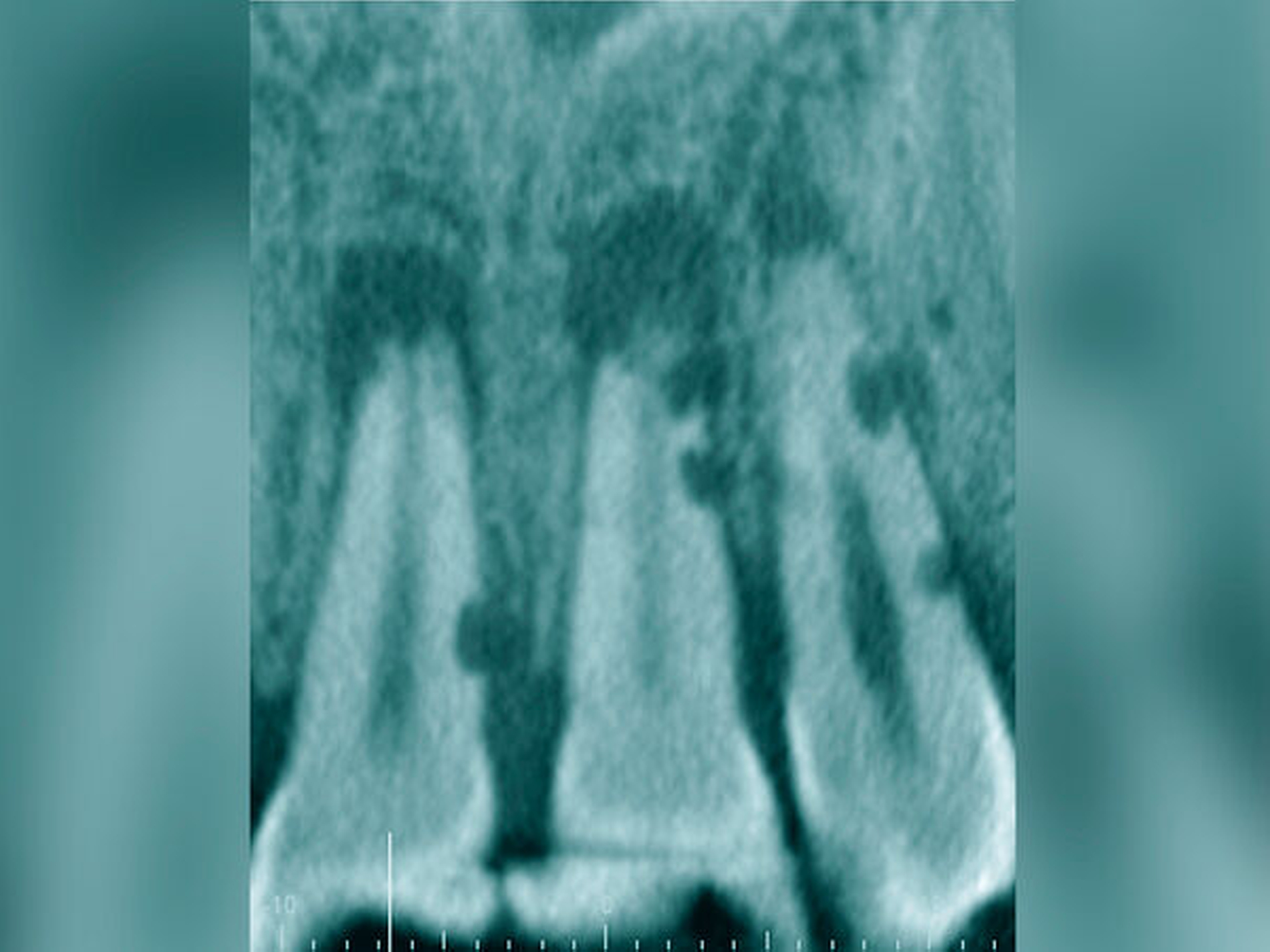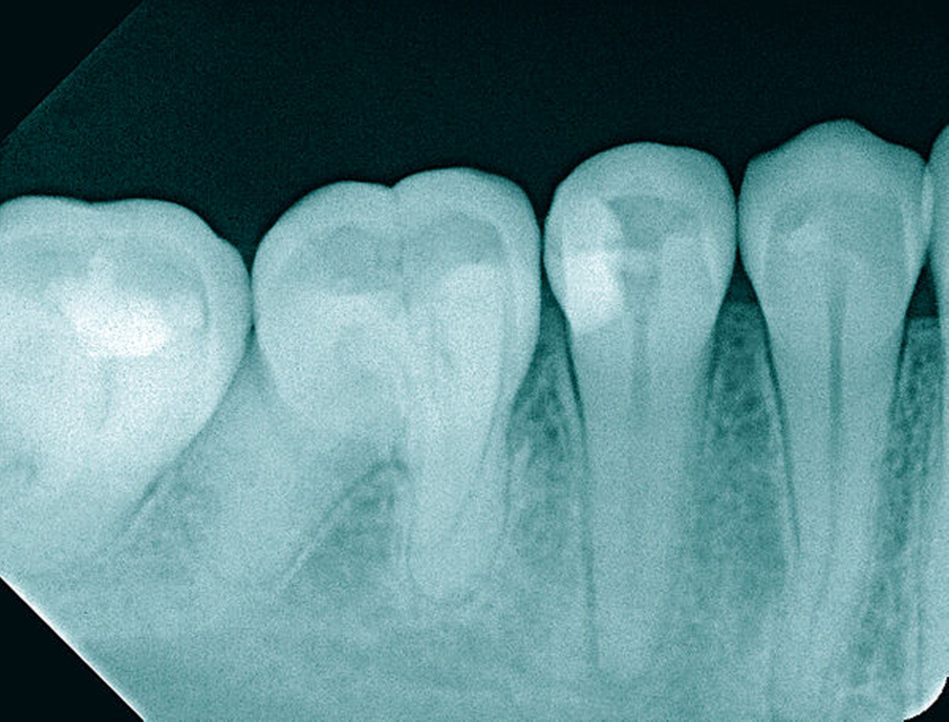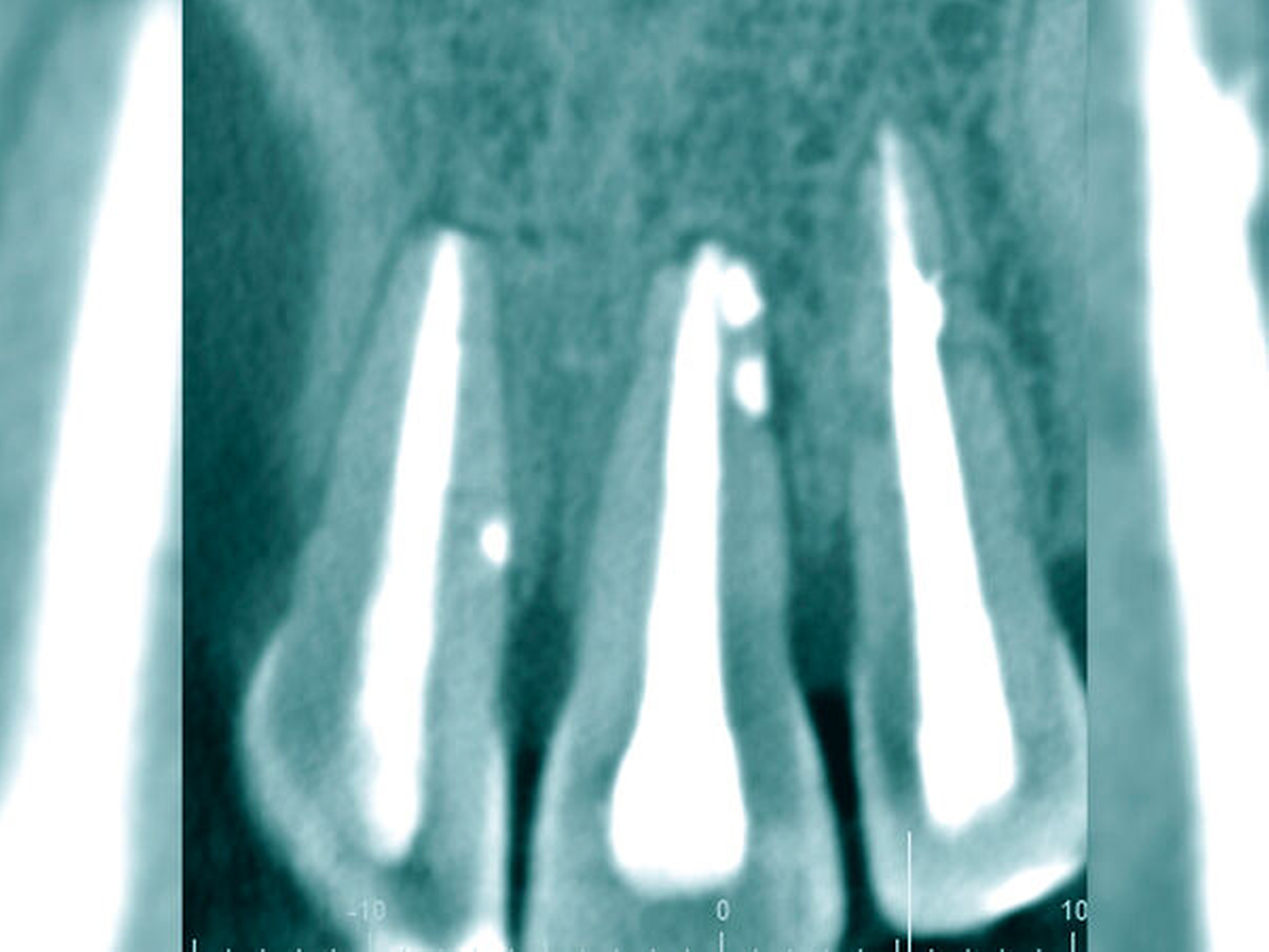 Lässt sich der Wurzelkanal auf der Röntgenaufnahme nur apikal erkennen, liegt meist eine Kalzifikation der Pulpa vor, die häufig erst unter Nutzung einer optischen Vergrößerung überwunden werden kann [Kiefner et al., 2017].