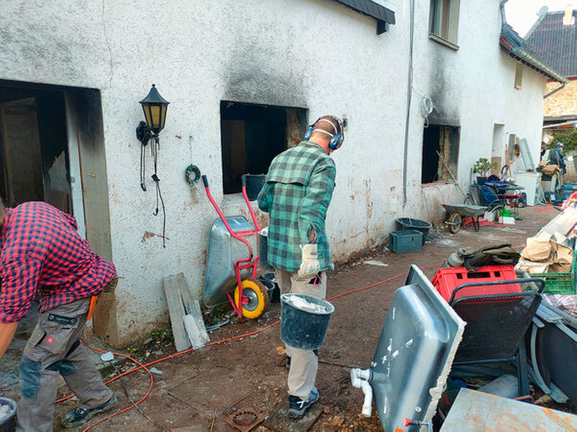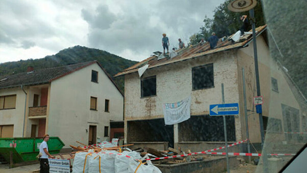 Unser Eindruck nach 13 Tagen vor Ort: Mit Hochdruck wird an der Wiederherstellung der Infrastruktur gearbeitet. So steht die Wasserversorgung seit Ende Oktober wieder uneingeschränkt zur Verfügung. Bei den beschädigten Privathäusern geht es dagegen teils sehr langsam voran – und ohne die Helfer wäre man sicher nicht mal halb so weit. So kam für eine Woche eine 17-köpfige Berufsschulklasse Zimmerleute mit zwei Lehrern aus Konstanz nach Rupperath und hat tagsüber Dachstühle entfernt – und abends am Lagerfeuer richtig viel gefeiert. Manche haben ihren kompletten Sommerurlaub hier verbracht. Viele Betroffene wohnen in Rohbauten oder Ruinen. Andere sind bei Verwandten oder in Ferienwohnungen untergekommen. Wieder andere hausen in Wohnwagen oder Garagen auf ihren Grundstücken.