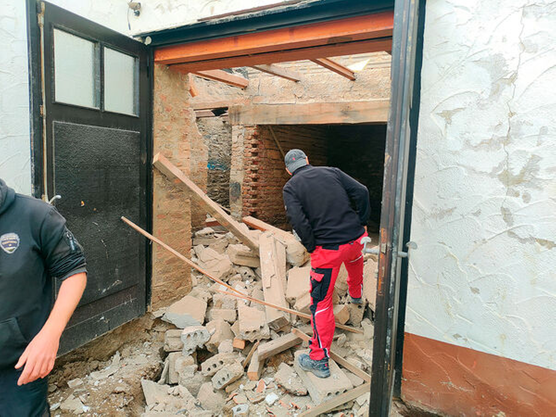 In Rupperath angekommen lebten wir auf der Pferdekoppel: Diese war zur Campwiese umfunktioniert. Ich ließ mich dem Küchenpersonal zuteilen, mein Mann fuhr täglich auf wechselnde Baustellen. Dort wird hauptsächlich Putz von den Wänden gestemmt und Estrich entfernt. Die überfluteten Häuser müssen im betroffenen Bereich – häufig Keller, Erdgeschoss und 1. OG – komplett in den Rohbauzustand zurückversetzt werden, damit die Wände und Böden austrocknen können. Wir waren erschrocken, wie viel dort noch zu tun ist. Immer noch stellt sich bei dem einen oder anderen Haus heraus, dass es doch abgerissen werden muss. Ein großes Problem sind dabei von Heizöl durchtränkte Mauern. Und selbst wenn ein Hausbesitzer versichert ist, hilft ihm das nichts, wenn er keine Handwerker bekommt. Auch deshalb ist das Ahrtal weiter dringend auf freiwillige Helfer angewiesen. Manchmal sind die Besitzer so traumatisiert, dass sie keine Kraft haben, etwas anzupacken. Wie die junge Familie, die mit Zahnbürsten Legosteine putzte. Haus und Garten und waren noch vollständig vermüllt, mit Treibgut und Schlamm überzogen, alles Hab und Gut von der Flut weggespült. Wenn dann ein Trupp von 15 bis 20 Helfern mit Gerät und Generatoren anrückt, sieht man sehr schnell Fortschritte und die Betroffenen bekommen wieder Zuversicht. Viele Anwohner durften zudem ewig nicht mit Aufräumarbeiten anfangen, weil noch kein Gutachter da war.