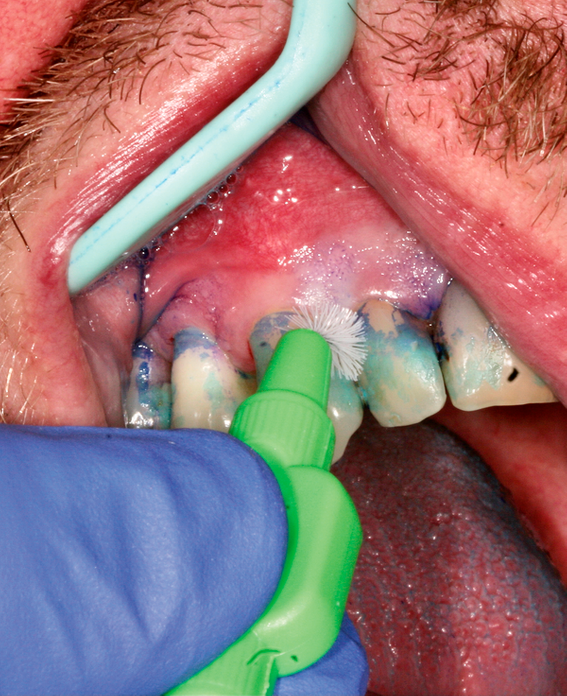 Die Empfehlungen für die Intervention in der vierten Stufe sind analog denen aus der ersten Stufe zu formulieren. Die häusliche mechanische Entfernung des Biofilms bildet die Grundlage der Behandlung einer gingivalen Entzündung. Alle Zahnflächen, die der Bildung des oralen Biofilms ausgesetzt sind, müssen effektiv mechanisch gereinigt werden. Einige können aber selbst unter optimalen Bedingungen nicht durch Zahnbürsten erreicht werden. Deshalb ist zum Erhalt der Gesundheit der interproximalen Gingiva die interdentale Reinigung unerlässlich – insbesondere im Rahmen der sekundären Prävention.