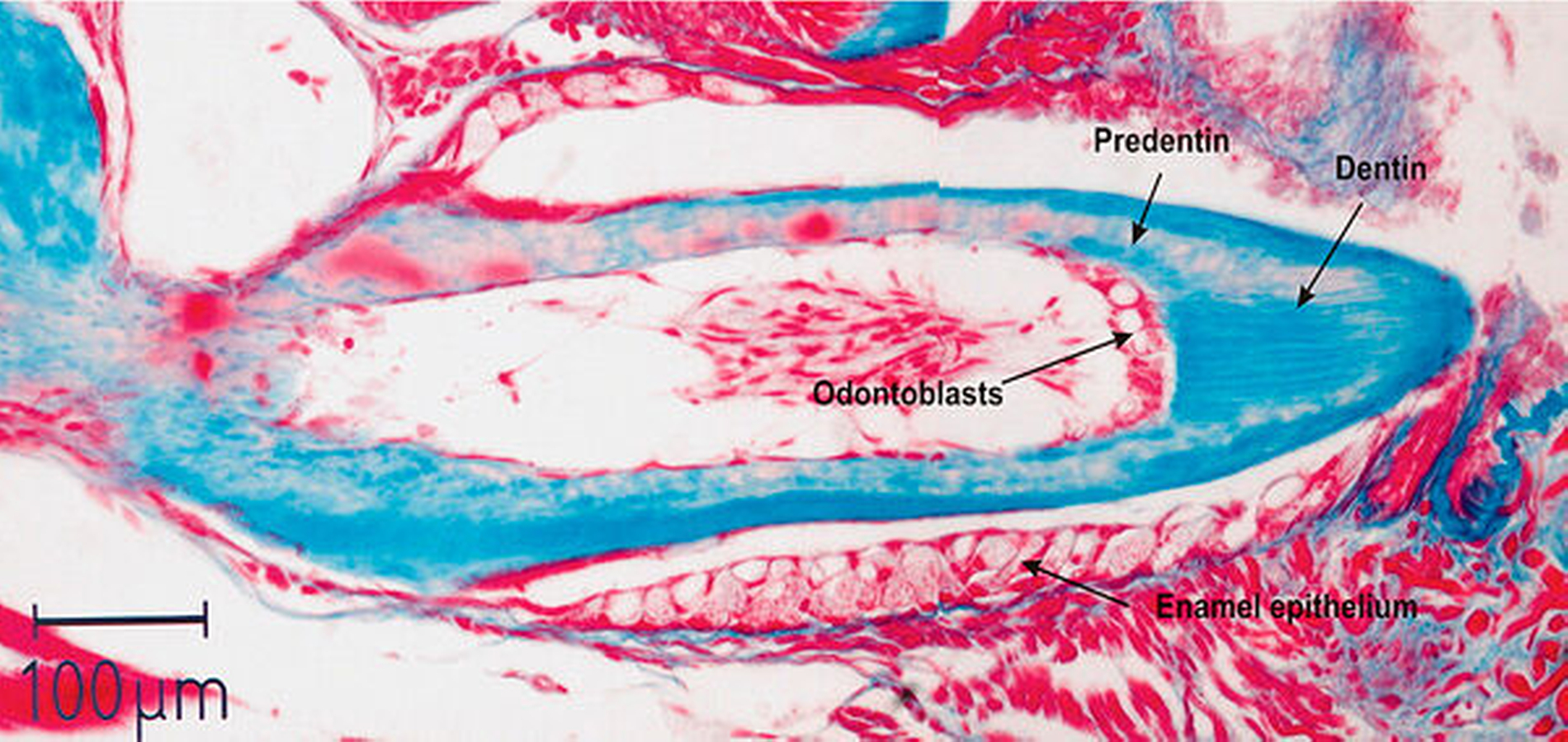 - Hypoplasien von Enemaloid und Dentin als bekannte Entwicklungsdefekte (wie beim Menschen!) direkt nach dem Larvenstadium