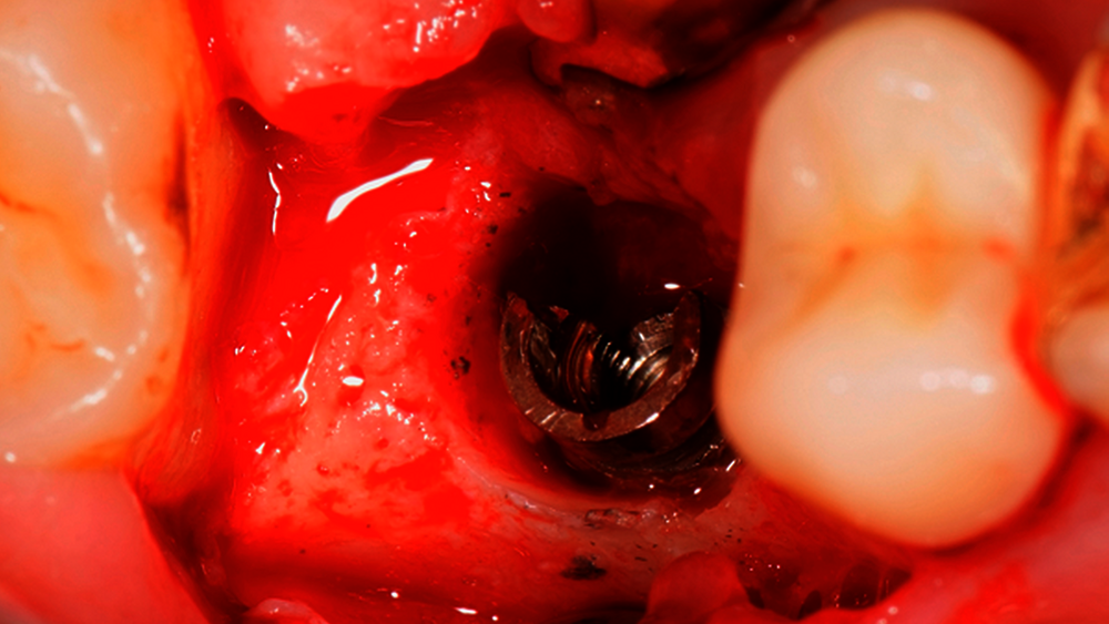 Bei einem Einzelzahnimplantat in regio 36 kam es circa fünf Jahre nach der Implantatinsertion etwa 3 mm über dem apikalen Ende zu einer Implantatfraktur. Die Maße des Implantats betrugen 3,5 mm x 10 mm. Das apikale Implantatfragment musste anschließend chirurgisch entfernt werden. In diesem Zusammenhang soll es zu einer Implantatneuversorgung kommen, allerdings bei nochmals verschlechtertem Knochenangebot. Der Patient weist eine sehr gute Mundhygiene auf. Selbst nach der Fraktur besteht trotz röntgenologischem Knochenverlust kein BOP. Das Implantat erschien unterdimensioniert und wird vom Hersteller auch nicht mehr vertrieben.