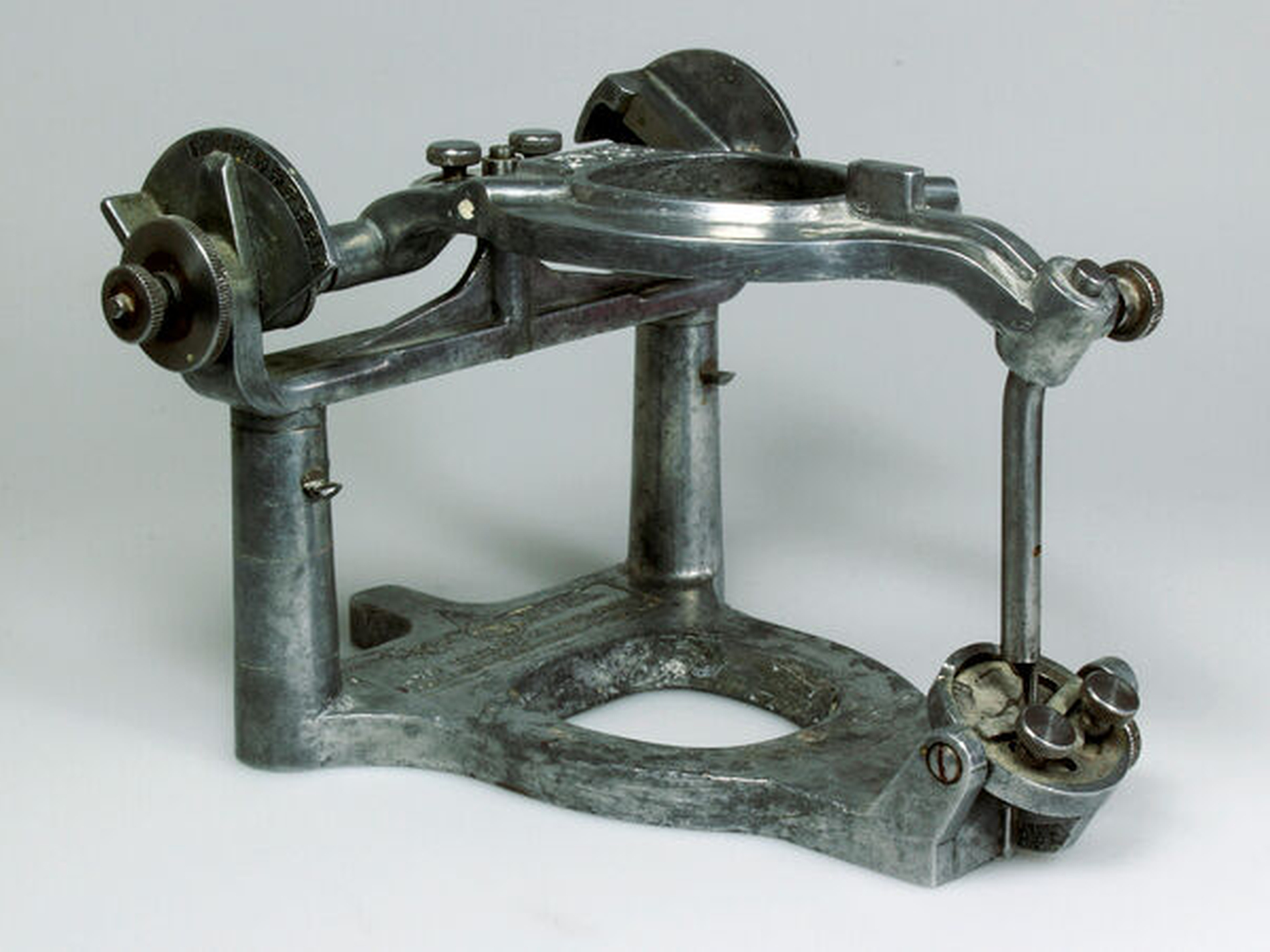 Übrigens wurde der Schweizer Artikulatorenkonstrukteur Alfred Gysi (1865–1957) 1927 von der Universität Marburg mit dem Titel Dr. med. dent. h. c. geehrt. Neben einem Gysi-Artikulator von 1930 gehört ein Artikulator des Engländers Gibson A. Bonwill zur Sammlung. Zu sehen sind auch Instrumente für die Bearbeitung von Kronen- und Brücken wie Konturenzangen, Kronenaufschneidezangen und Stiftzahnentferner.