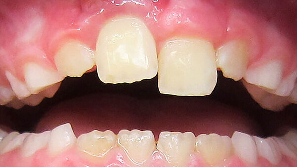Nach einem Trauma bei einem siebenjährigen Mädchen wurde der avulsierte Zahn 11 ungünstigerweise für mehrere Stunden in einem Taschentuch trocken gelagert. Der Hauszahnarzt replantierte den Zahn schließlich und schiente ihn für vier Wochen ein. Weitere Kontrollen erfolgten nicht.