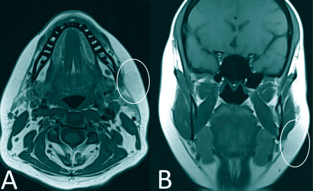 Die Patientin stellte sich in der Ambulanz der Klinik und Poliklinik für Mund-Kiefer-Gesichtschirurgie – Plastische Operationen der Universitätsmedizin Mainz mit einer seit mehreren Jahren bestehenden und größenprogredienten Schwellung submandibulär links vor (Abbildung 1). Nachts bereitete diese ihr zunehmend Schmerzen, insbesondere in Linksseitenlage.