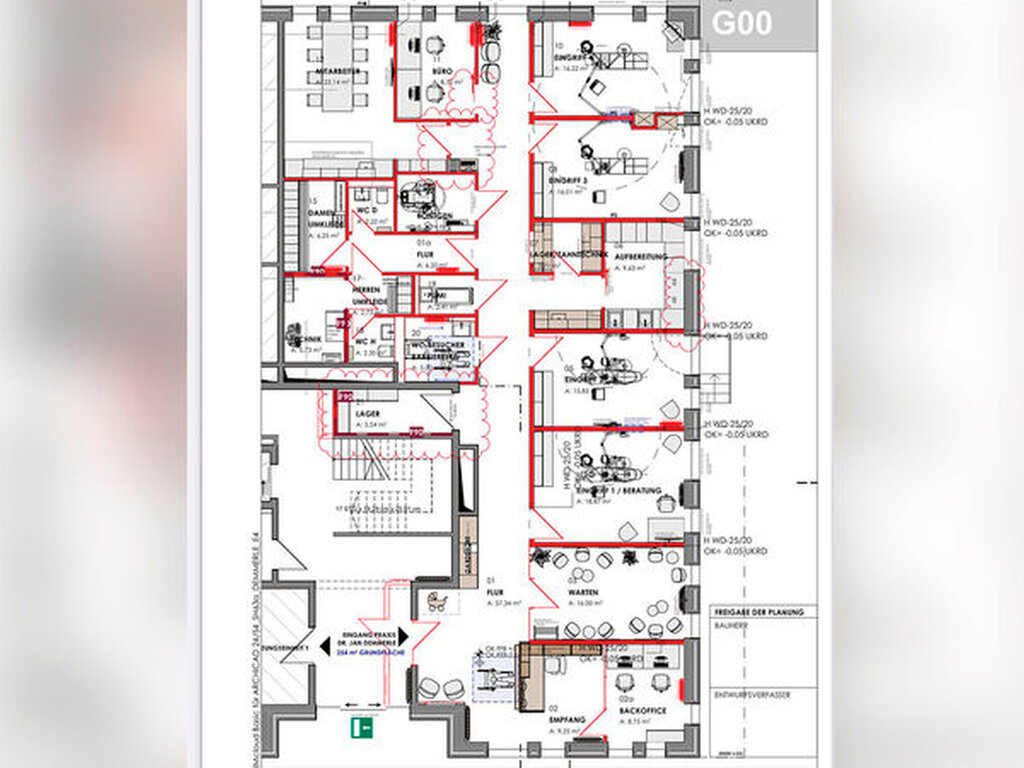 Als ich das Mietobjekt hatte, habe ich zunächst selbst einen Grundriss der Praxisräume entworfen, denn jede Planung oder Anpassung verursacht Kosten bei den beauftragten Stellen.