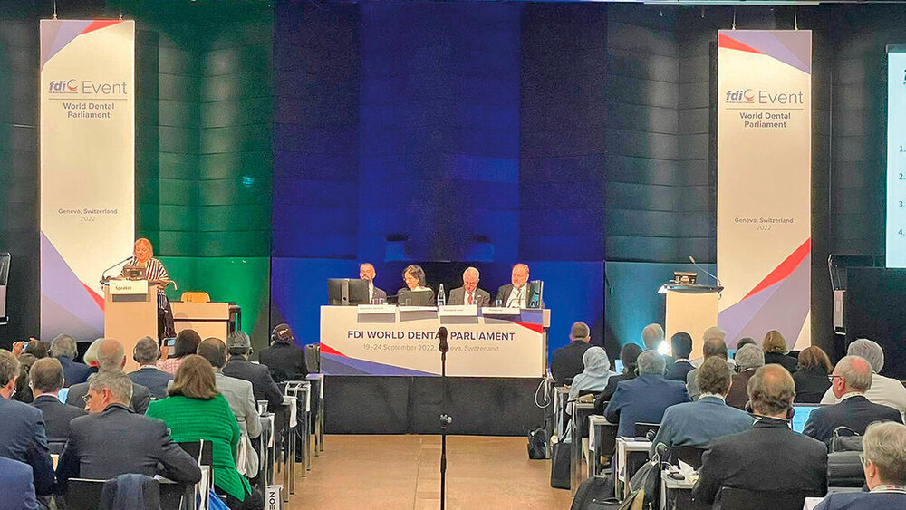 Das diesjährige Parlament des FDI-Weltzahnärzteverbandes fand erstmals nach 2019 wieder in Präsenz statt, diesmal jedoch ohne den großen, mehrtägigen FDI-Weltkongress. Das FDI-Präsidium blieb unverändert. Erst im vergangenen Jahr hatte die Marokkanerin Prof. Dr. Ihsane Ben Yahya aus Casablanca die Führung des Weltverbandes der Zahnärzte von Dr. Gerhard Seeberger übernommen. Sie leitete in Genf eine harmonische Generalversammlung, die drei neue politische Stellungnahmen der FDI verabschiedete: