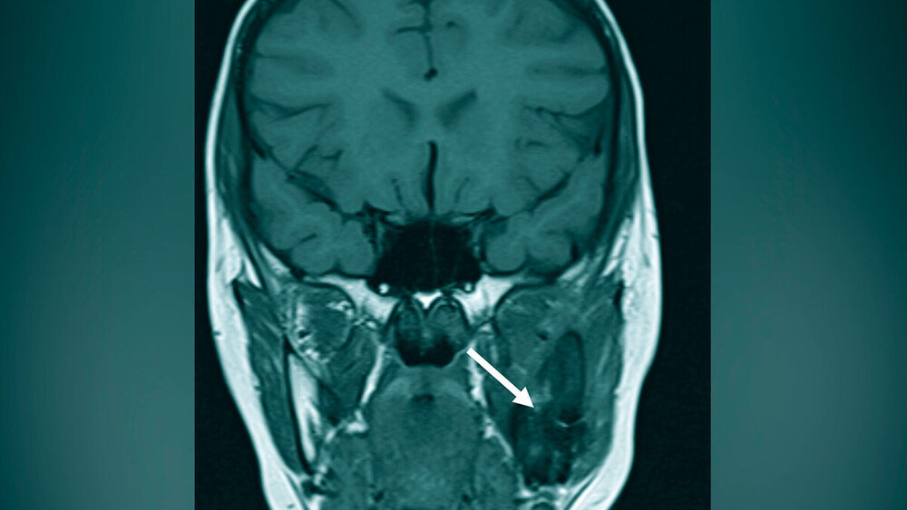 Aktuell befindet sich die heute zwölfjährige Patientin im regelmäßigen Recall in ambulanter Sprechstunde. Aktuelle radiologische Verlaufskontrollen zeigen eine minimale Progredienz der dysplastisch veränderten Knochenanteile des linken Unterkiefers (MRT, Abbildung 4). Unter bedarfsgerechter Analgesie mit Paracetamol und Novaminsulfon bei episodischen Schmerzen sind im Kontext der geringfügigen Progredienz, aber sonstigen Beschwerdefreiheit weitere, kurzfristige Verlaufskontrollen mittels MRT vereinbart.