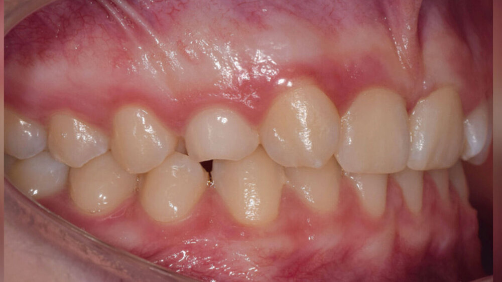Wie die Abbildungen 4a und 4b zeigen, konnte ein regelrechter Overjet und Overbite erzielt werden. Durch die Aufrichtung der Oberkieferfrontzähne und die daraus resultierende Vergrößerung des Overjets konnten der retrale Zwangsbiss aufgelöst und der Nasolabialwinkel zugunsten des extraoralen Profils verkleinert werden. Durch die indirekte Verankerung der zentralen Inzisivi konnten reaktive Kräfte durch eine unerwünschte Retraktion auf die Oberkieferfront und ein Verlust der Mittellinie während des aktiven Lückenschlusses vermieden werden. In Regio 22 wurde eine mesio-distale Lückenbreite in symmetrischer Anlehnung zur Gegenseite geschaffen.