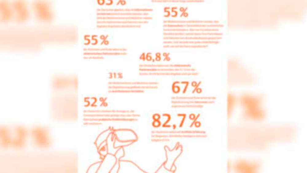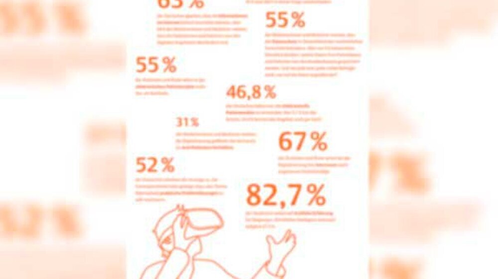 45 Prozent der Mediziner finden, dass Patienten durch die bessere Verfügbarkeit von Gesundheitsinformation heute besser informiert sind, 60 Prozent denken aber, dass sie mit der Einordnung überfordert sind. Eine gewisse Überforderung ist allerdings auch unter den Ärzten erkennbar, beispielsweise im Umgang mit digitalen Patientendaten: Nur 4 Prozent haben einen Überblick darüber, welche Patientendaten von der Krankenkasse gespeichert werden. Nicht einmal jeder siebte weiß, wer auf welche dieser Informationen zugreifen kann. Aus Sicht der Patienten könnte dieser Umstand die Vertrauensbasis verschlechtern.