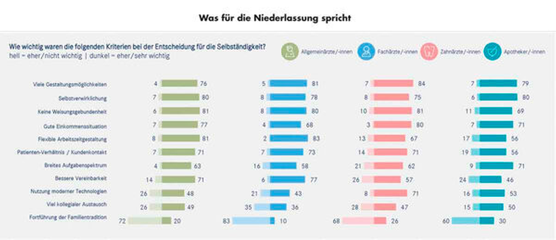 Die Studie zeigt auch, dass der Schritt in die Selbstständigkeit nur selten bereut wird. 81 Prozent der befragten Zahnärzte würden sich auch heute wieder selbstständig machen.