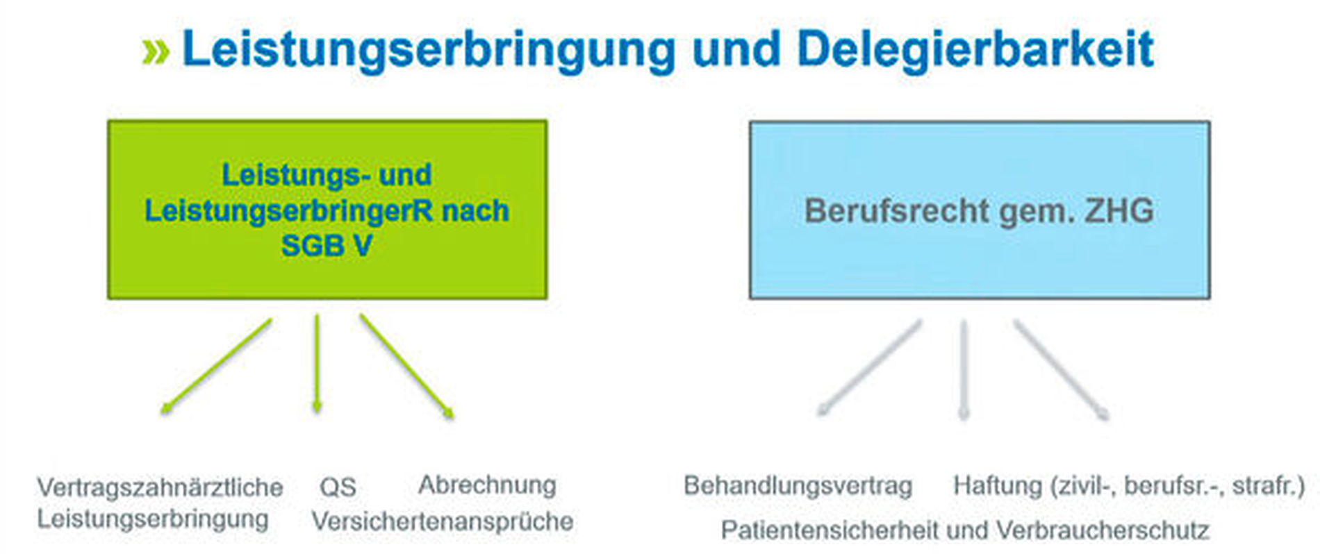 Wenn ein Zahnarzt im Rahmen der Delegation eine Leistung durchführen lässt, die dem unmittelbaren Zahnarztvorbehalt zuzuordnen ist oder wenn die Person, an die delegiert wird, nicht die erforderliche Qualifikation besitzt, verletzt er seine Pflicht zur persönlichen Leistungserbringung. In diesem Fall verliert er leistungsrechtlich seinen Vergütungsanspruch.