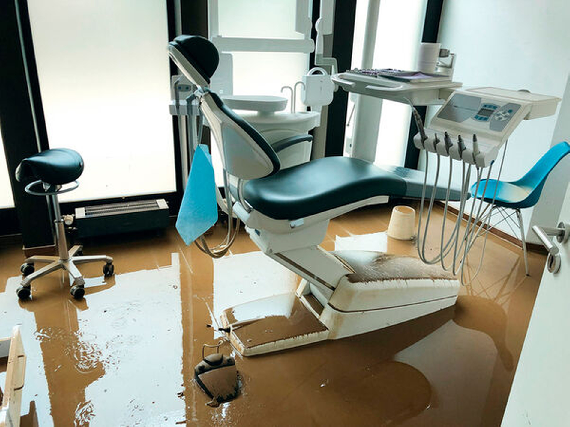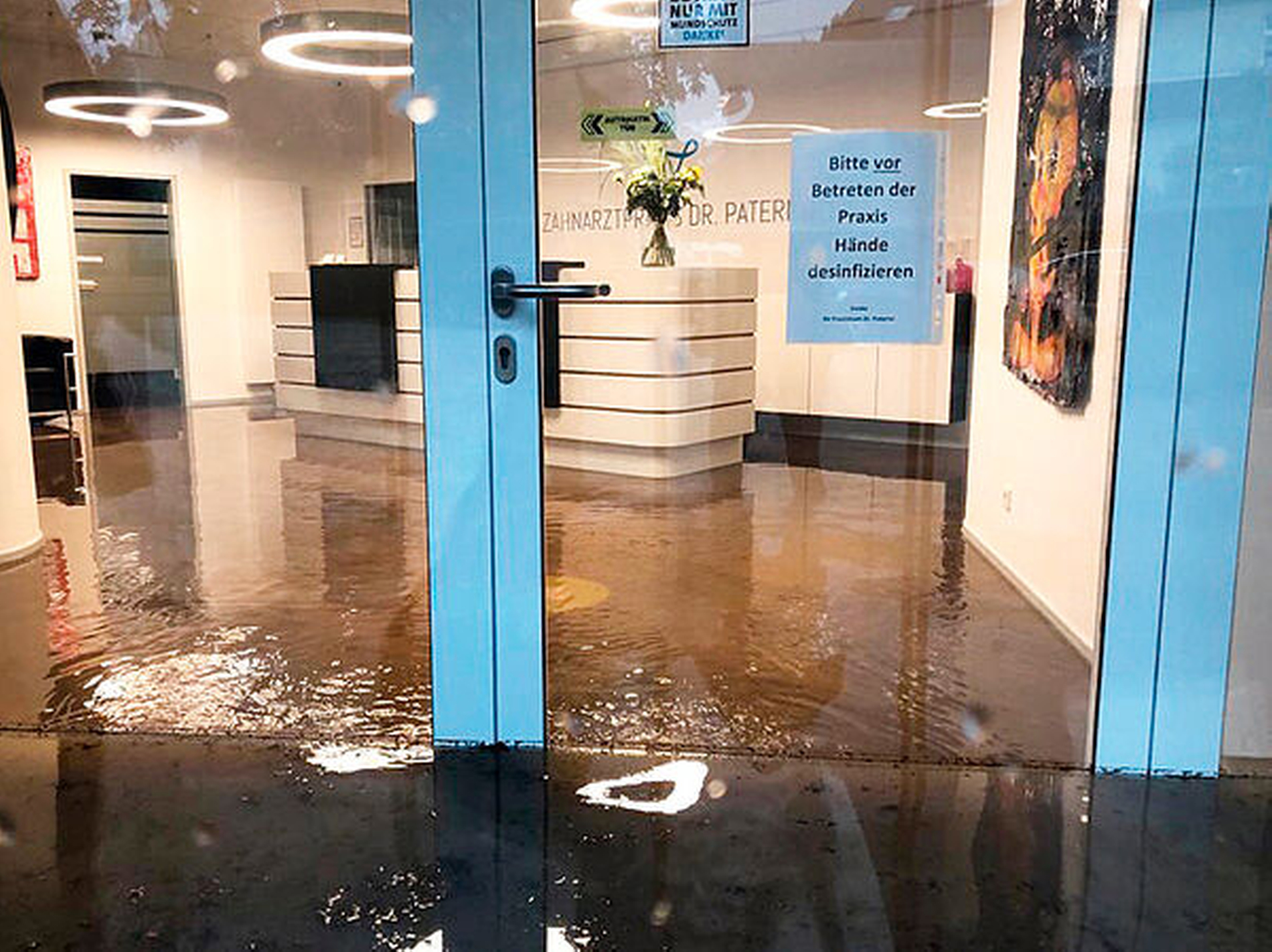 Dr. Sabrina Hesener hat Ende 2016 eine alteingesessene Praxis in Euskirchen übernommen und nach Aussage ihres Mannes und Praxismanagers Holger Hesener „viel Zeit, Fleiß, Aufwand und Geld investiert“, um die Praxis zu modernisieren und digitalisieren. Alle vier Behandlungsstühle plus Equipment wurden ausgetauscht, um ein modernes Flair zu schaffen. 2020 wurde die Praxis erweitert und im April 2021 die Eröffnung zwei weiterer Behandlungsräume gefeiert. Dann kam das Jahrhundert-Hochwasser: Rund einen Meter hoch stand das Wasser im Erdgeschoss. Es wurde alles zerstört: das im Keller befindliche Dentallager, Kompressoren, Absauganlagen, IT-Infrastruktur, alle Behandlungsstühle, Möbel und viel Dental-Equipment. „Wir standen vor den Scherben unserer Existenz“, schreibt Hesener und erinnert sich an die hohe Verantwortung Team und Patienten gegenüber. Das Ziel: „Alles so schnell wie möglich wiederaufbauen und zeitgleich irgendwie die zahnmedizinische Versorgung aufrechterhalten“.