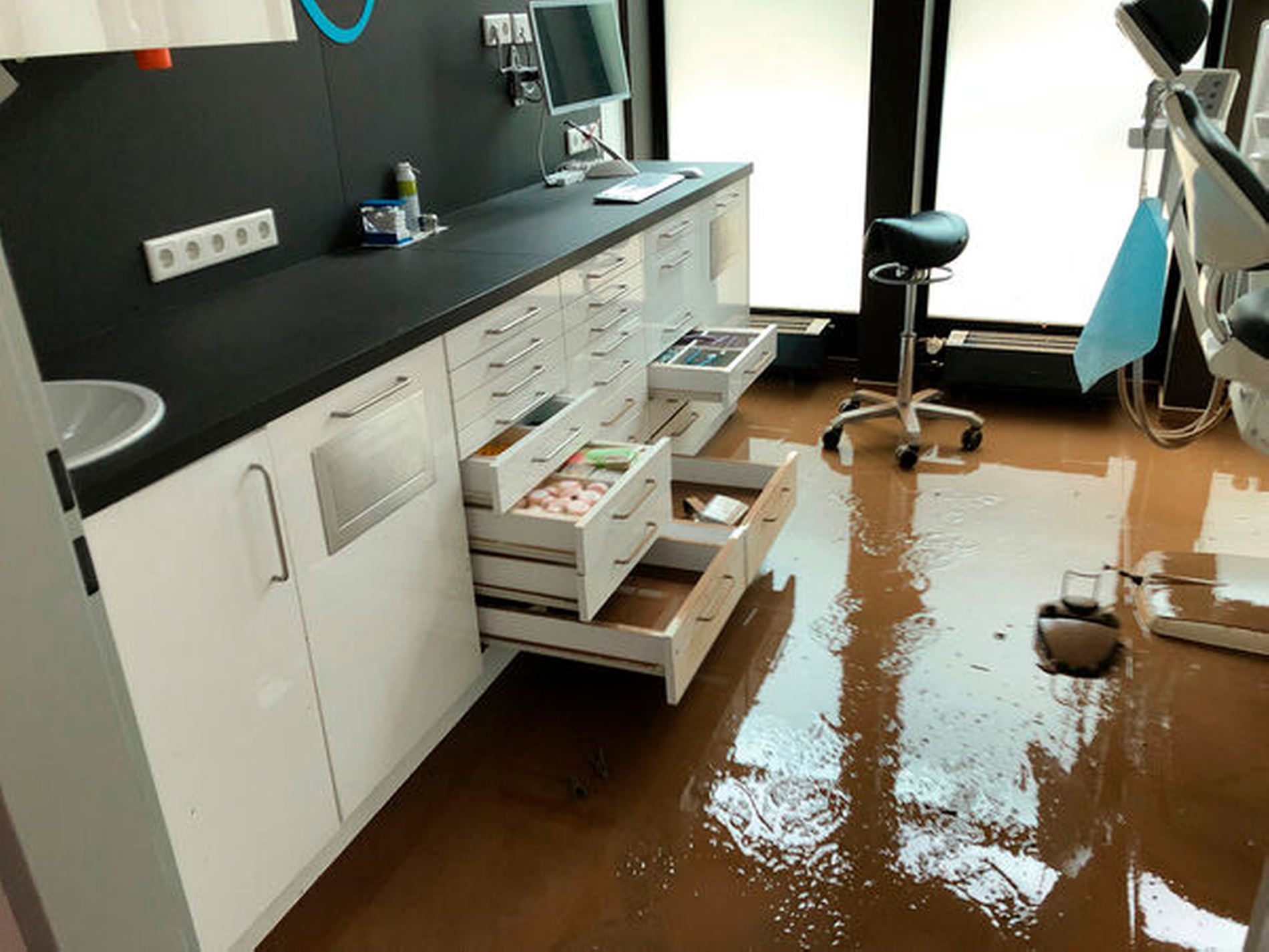 „Das Ausmaß des Schadens war uns anfangs nicht klar. Wir versuchten zunächst den Schlamm rauszuschaffen, bevor er fest würde. Naiverweise dachten wir, das machen wir schnell sauber und können dann übernächste Woche den Praxisbetrieb vielleicht schon wiederaufnehmen. Aber der Schlamm war überall: Möbel, Behandlungseinheiten und die Elektronik – das alles war hin. Sollten wir die Praxis überhaupt wieder öffnen? Wir sind nicht mehr die Jüngsten und wollten uns am Ende unserer zahnärztlichen Berufszeit auch nicht noch mal hoch verschulden. Aber wir haben dann doch ziemlich bald mit dem Wiederaufbau begonnen. Heute ist die Praxis im Prinzip wieder so, wie sie war – auch dank der Spenden. Eins möchte ich auch betonen: Wir stehen sicher nicht besser da als vorher, falls der Eindruck durch die Schadensersatz-summen und die Hilfsgelder entsteht. Am Ende kommen darauf nämlich steuerliche Abgaben. Unser Vater hat die Praxis 1956 gegründet. Leider verstarb er vergangenen November und konnte so den abgeschlossenen Wiederaufbau nicht miterleben. Er wäre sicher sehr froh und stolz, dass wir die Praxis wiederaufbauen konnten.“