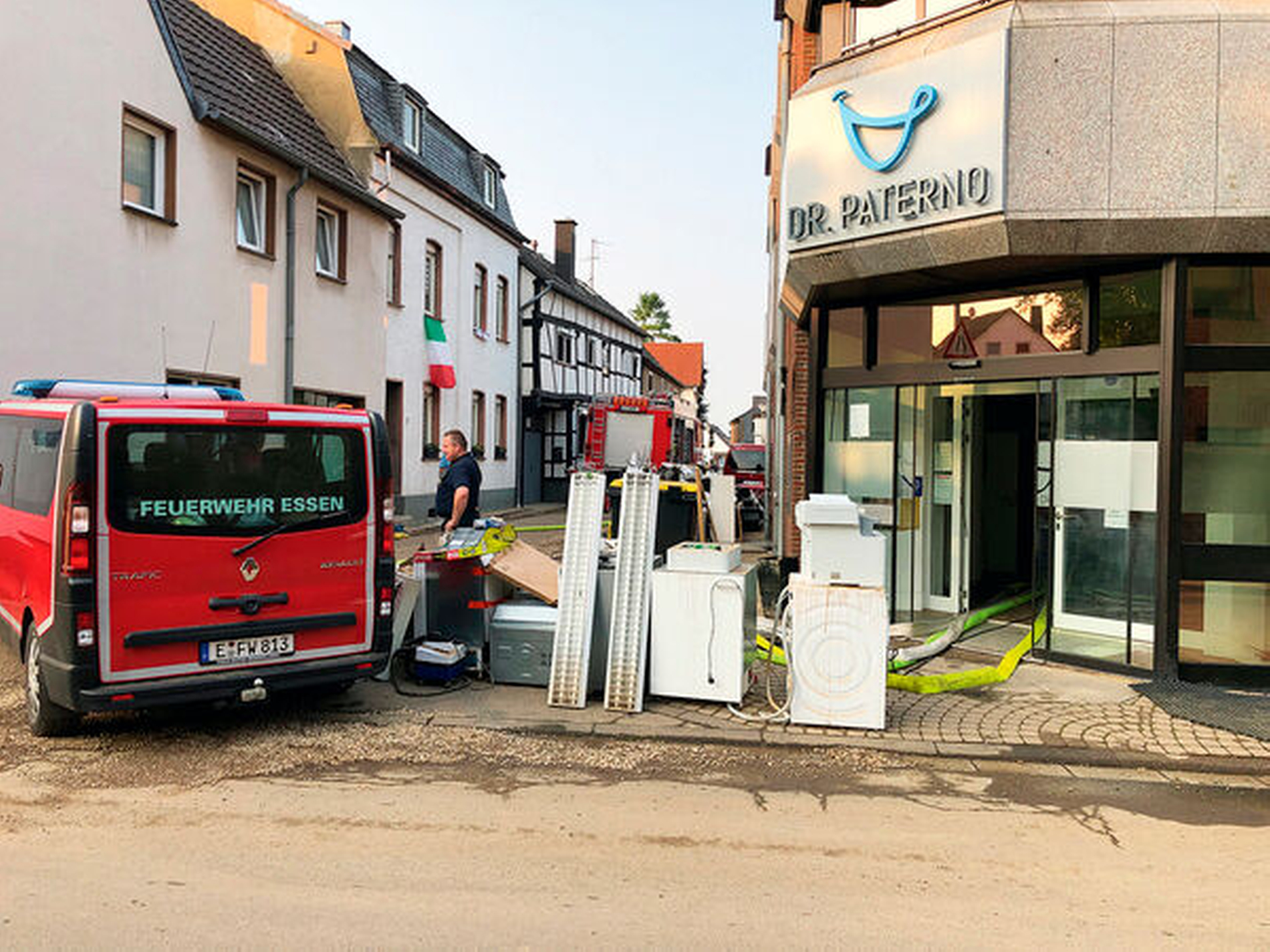 Von der Treppe aus nahm Paterno mit dem Handy ein Video auf und postete es in die Praxis-Whatsapp-Gruppe – mit einem einzigen Satz: „Wir saufen ab.“ Sie flüchteten mit ihren kleinen Kindern ins erste Obergeschoss und mussten mitansehen, wie die Praxis im Erdgeschoss überschwemmt wurde.