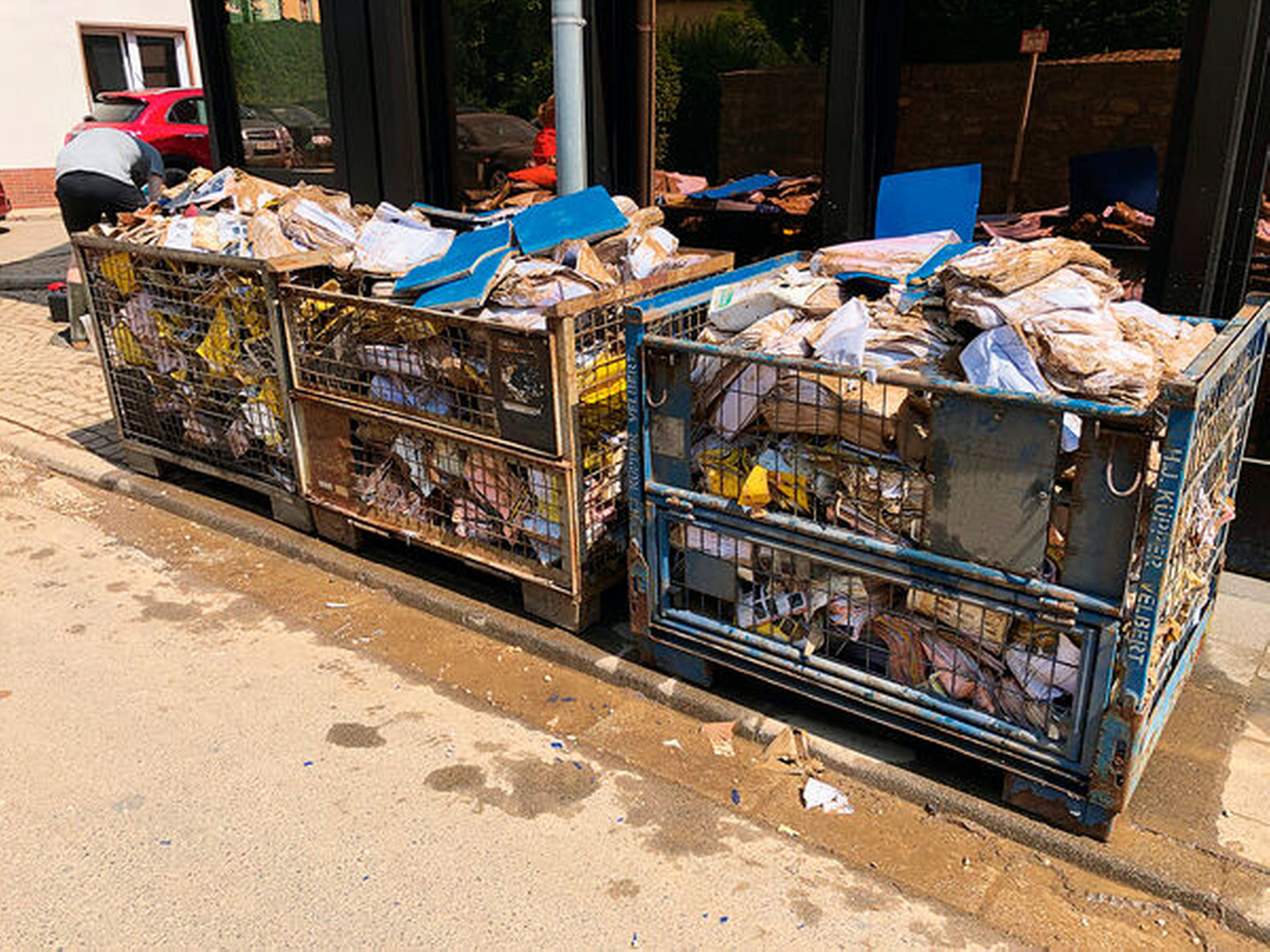 Zunächst dachte Hallmich-Kober, nur ihre Kellerräume seien bis zur Decke überflutet gewesen. Doch auch in Büro, Personalraum und Labor gab es einen Totalschaden: Schränke, Server, Computer, Telefonanlage, Küchenzeile, Esstisch-Garnitur, Rüttler, Trimmer, Tiefziehgerät und vieles andere war nur noch Schrott – und das Wasser durch die Betondecke bis in den Estrich in die Praxisräume gezogen.