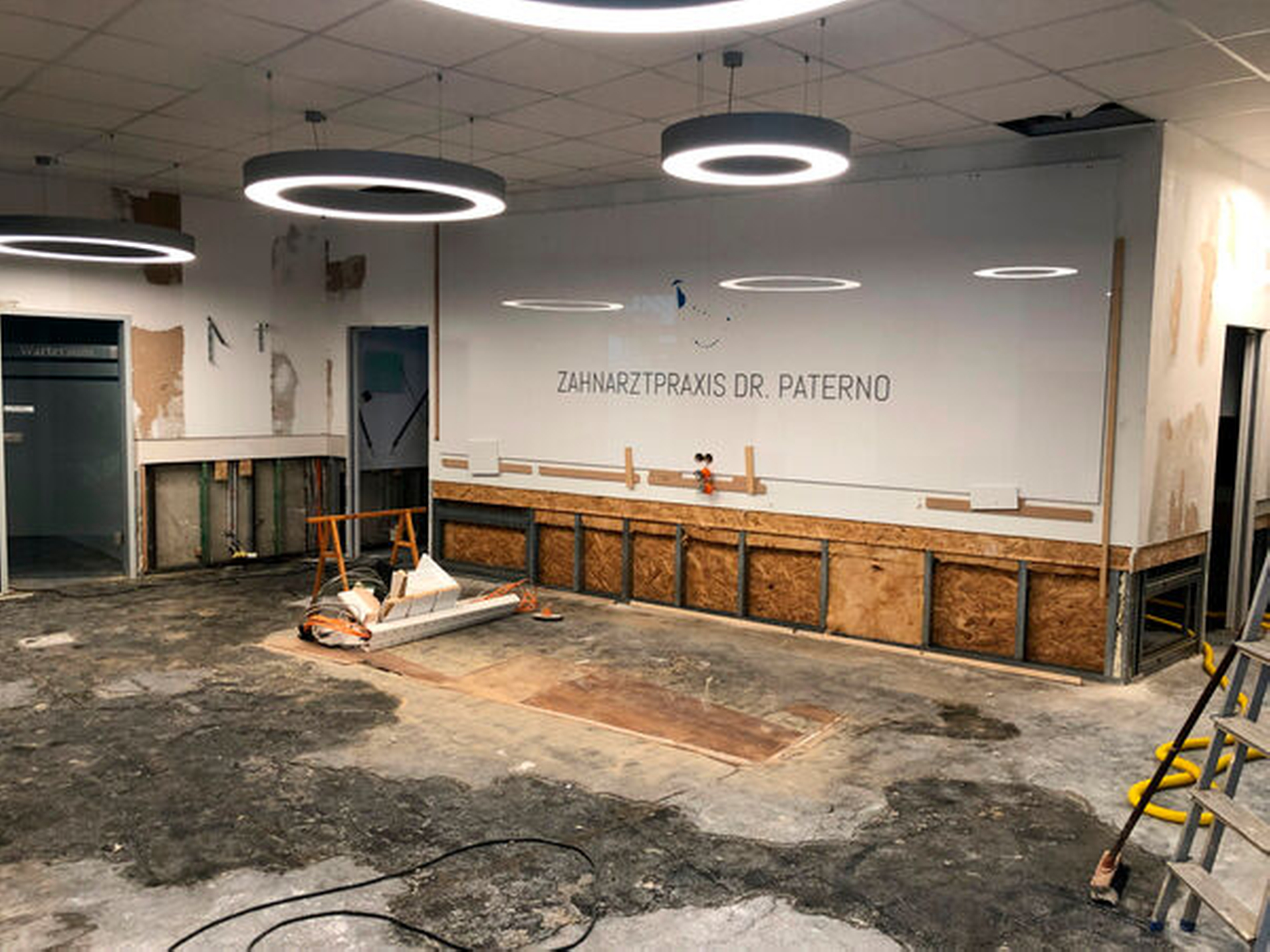 Die Entkernung dauerte vier Wochen, die Trocknung der Räume zweieinhalb Monate. Der Umbau ging zügig und seit dem 1. März 2022 ist die Praxis auch im EG wieder eröffnet – pünktlich zum siebenjährigen Bestehen, Paterno hatte die Praxis am 1. März 2015 von seinem Vorgänger übernommen.