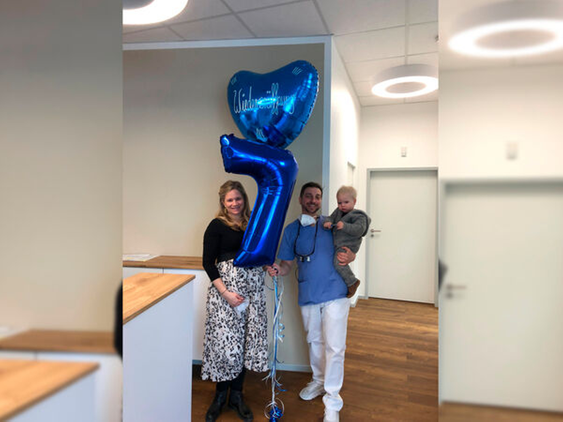 Das größte Problem sei für ihn und seine Frau am Anfang die finanzielle Unsicherheit gewesen, erzählt er. Woher die Kraft zum Weitermachen nehmen? Wie mit der Unsicherheit für das Personal umgehen? „Können wir das finanziell stemmen? Können wir alles wieder ausbauen, schaffen wir das noch mal?“ Diese Fragen gingen den Paternos in diesen Tagen immer wieder durch den Kopf. „Wir hatten gerade erst den Stress mit dem Ausbau des Erdgeschosses im September 2020 und die Geburt unseres zweiten Kindes hinter uns gebracht. Während der Flut erfuhren wir dann noch von unserem dritten Kind. Es war in dieser Zeit ein Lichtblick, eine wundervolle Nachricht. Aber auch verbunden mit extremer Übelkeit und Kraftlosigkeit“, schreibt der Zahnarzt. Er habe wochenlang von 7 bis 21 Uhr behandelt, während sein Schwiegervater und seine Frau sich um die Sanierung kümmerten.