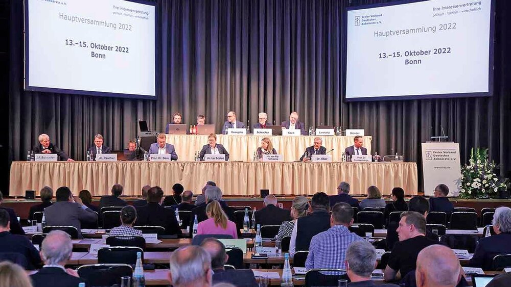 Zwischen Vorsorgen und Versorgen – Wie sieht eine nachhaltige und gute Zahnheilkunde in der Zukunft aus?“ Zum Auftakt der Hauptversammlung diskutierten Vertreter des Freien Verbands Deutscher Zahnärzte (FVDZ) mit Spitzenvertretern der Kassenzahnärztlichen Bundesvereinigung (KZBV), der Bundeszahnärztekammer (BZÄK), der Deutschen Gesellschaft für Zahn-, Mund- und Kieferheilkunde (DGZMK) und dem Verband der Privaten Krankenversicherung (PKV) über Perspektiven der Berufsausübung.