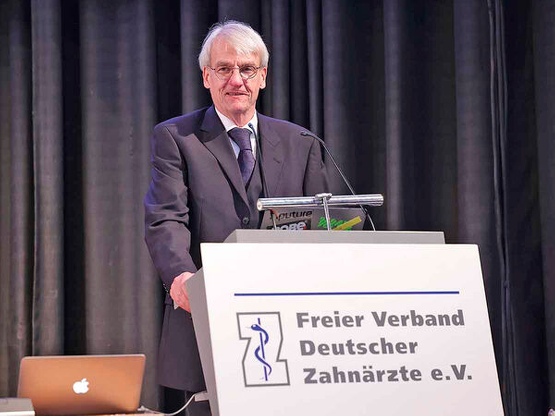 BZÄK-Präsident Prof. Dr. Christoph Benz, betonte die große Bedeutung des Generalisten: „Es gibt nur eine Zahnheilkunde, die es zu bewahren gilt.“ Er ging auf zwei Hauptprobleme ein, die die Zahnärzteschaft in den Praxen vor große Herausforderungen stellten. Zum einen sei dies das Personalproblem. Dazu gebe es im Rahmen des generellen Fachkräftemangels in Deutschland keine schnelle Lösung. Das zweite sei die Gebührenordnung für Zahnärzte (GOZ). „Wir brauchen eine neue GOZ mit ständiger Anpassung“, forderte er: „Bei diesem Thema ist der Minister leider ein Totalausfall.“ Allerdings gebe es gute Kontakte aus der BZÄK zu Mitarbeitern des Bundesministeriums und der Gesundheitsministerien auf Länderebene. Diese seien bereits erfolgreich genutzt worden.