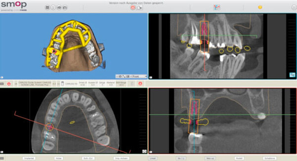Prinzipiell können das Implantatsystem, der Durchmesser und die Länge entsprechend der individuellen Patientensituation und den Vorlieben des Behandlers angepasst werden. In den Datenbanken der unterschiedlichen IPS sind maßstabsgetreue Werte der Implantate vieler Hersteller hinterlegt. Zu beachten ist, dass diese Datenbanken regelmäßig über Software-Updates gepflegt werden müssen. Ansonsten kann es vorkommen, dass das gewünschte Implantat nicht in der Datenbank enthalten ist.