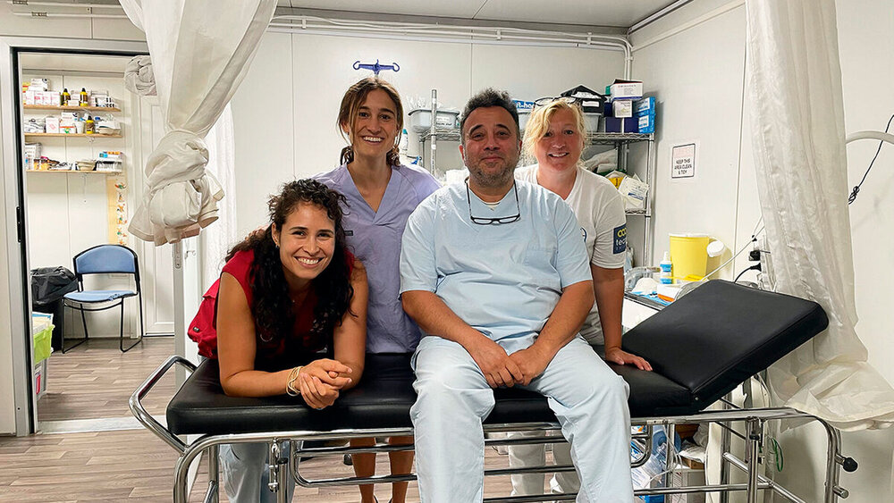 Zuletzt reiste ich Ende Juli zusammen mit der ZFA Anne Täger aus Senden zu einem Arbeitseinsatz auf die Insel – ein Jubiläumseinsatz sozusagen. Allein in dieser Woche trafen mindestens drei Boote mit circa 80 Menschen aus der Türkei ein. Aus Angst vor den Pushbacks verstecken sich die Männer, Frauen und Kinder nach ihrer Ankunft oftmals in den Bergen und Wäldern der Insel. Dort werden sie dann erst nach Tagen des Ausharrens gefunden und in ein Quarantänelager gebracht. Nach Ausschluss von Infektionskrankheiten kommen sie ins eigentliche Lager – nach Vial und auch zu uns.