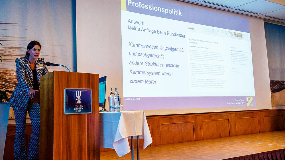 Die Präsidentin der Zahnärztekammer M-V, Stefanie Tiede, ging in ihrer Begrüßungsrede neben dem Tagungsthema auf die Problematik von Aligner-Shops ein. Aligner hätten sich inzwischen in der Fachwelt etabliert. „Das Prinzip klingt vermeintlich einfach, ist aber komplex. Denn jede Veränderung beeinflusst das gesamte Gebiss“, betonte Tiede. Ergo gehörten Aligner-Behandlungen in die Hände von Zahnärzten und Kieferorthopäden. Es bestehe der Verdacht, dass bei gewerblichen Aligner-Anbietern medizinische Standards mitunter unterschritten werden, was unerwünschte Nebenwirkungen zur Folge habe. Darüber hinaus beleuchtete Tiede die besondere Rolle der Zahnärztekammern mit Blick auf die teilweise ablehnende Haltung jüngerer Kolleginnen und Kollegen sowie den weiter steigenden Personalmangel.