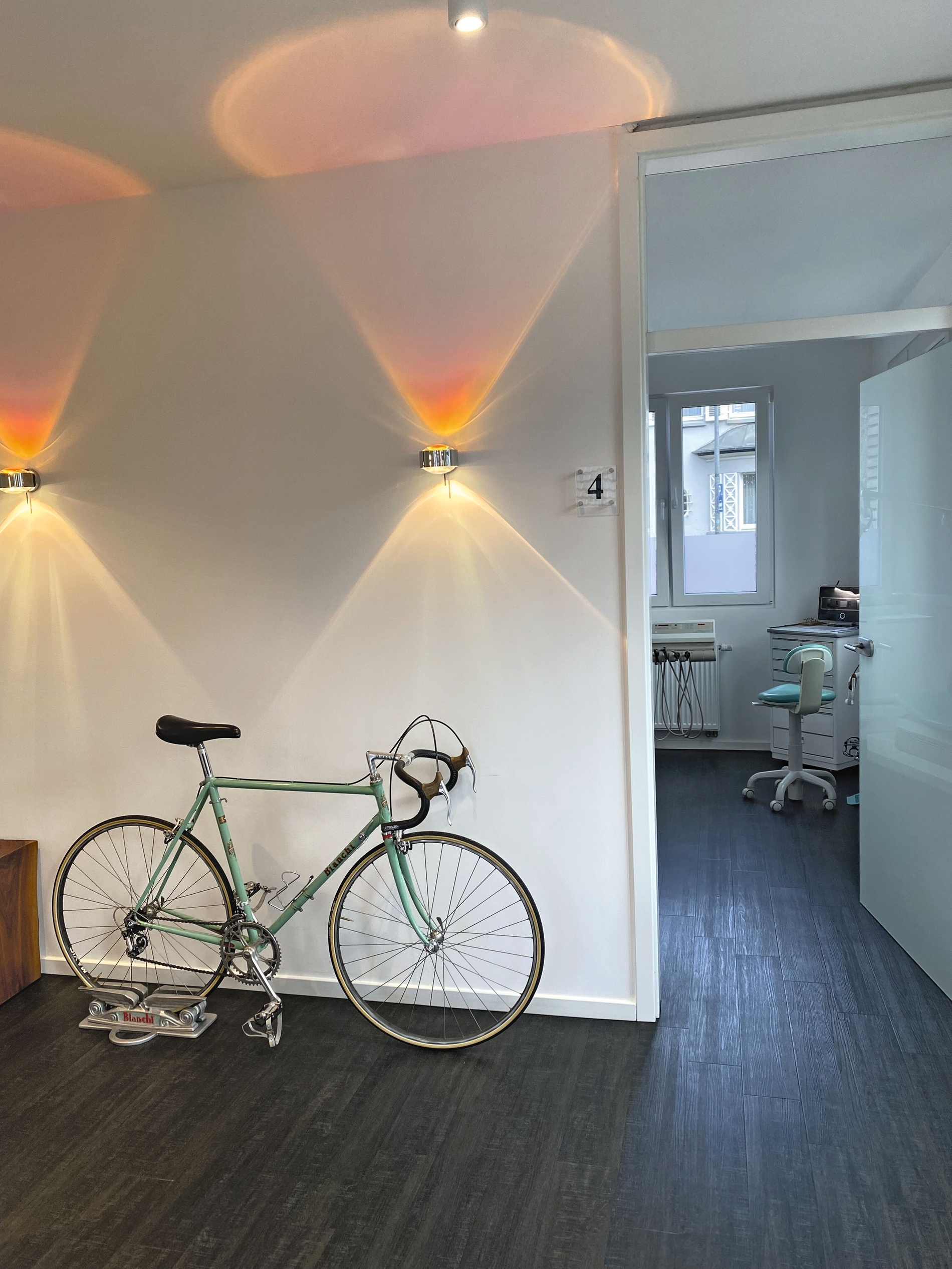 Aktuell warte er auf ein ehemaliges Profiteamrad aus dem Jahr 1949. Die Sonderanfertigung verfüge bereits über innen verlegte Bremszüge – eine Technik, die erst knapp 30 Jahre später breitere Verwendung fand, schwärmt der Zahnarzt, der seine Sammlerstücke technisch von einem Profimechaniker feinjustieren lässt. Die Liebhaberstücke aus dem Dornröschenschlaf zu wecken, also zu säubern und zu polieren, übernimmt er hingegen gern selbst. Für ihn ist es ein ganz besonderen Moment, „wenn man sieht, was da unter Jahrzehnte altem Staub zutage tritt".