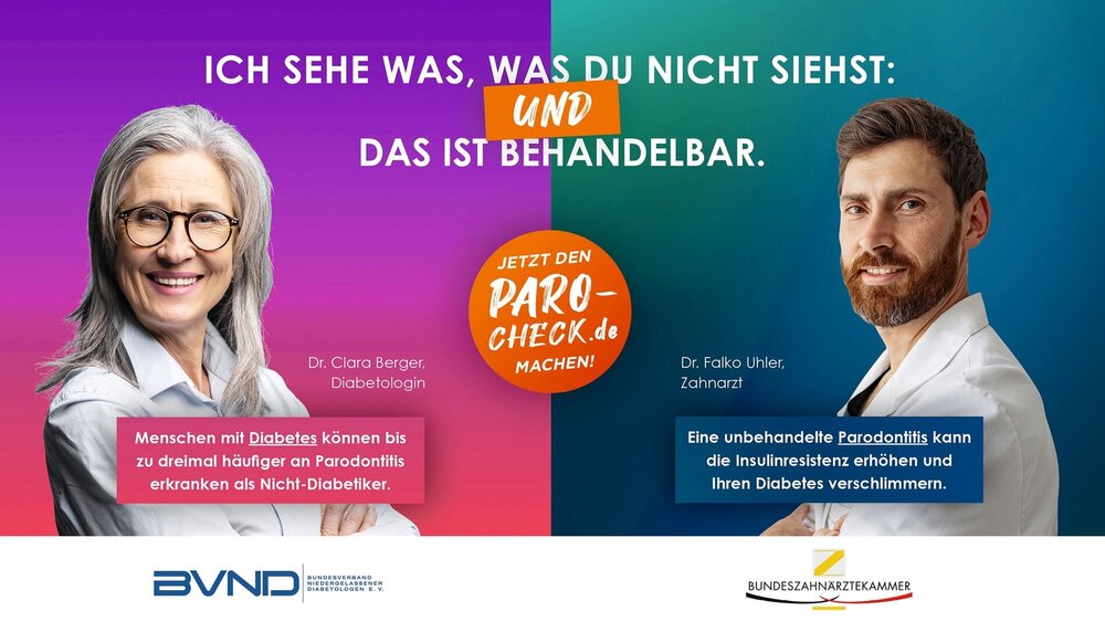 Rund 8,5 Millionen Menschen in Deutschland sind an Diabetes mellitus Typ 2 erkrankt. Hinzu kommt eine Dunkelziffer von mindestens zwei Millionen Menschen. An Parodontitis leiden rund 35 Millionen. Als die BZÄK ihre Paro-Aufklärungskampagne im März startete (https://paro-check.de), standen zunächst die Symptome und Risikofaktoren einer Parodontitis im Fokus, dann wurden die Wechselwirkungen zwischen Parodontitis und Diabetes in den Vordergrund gerückt.