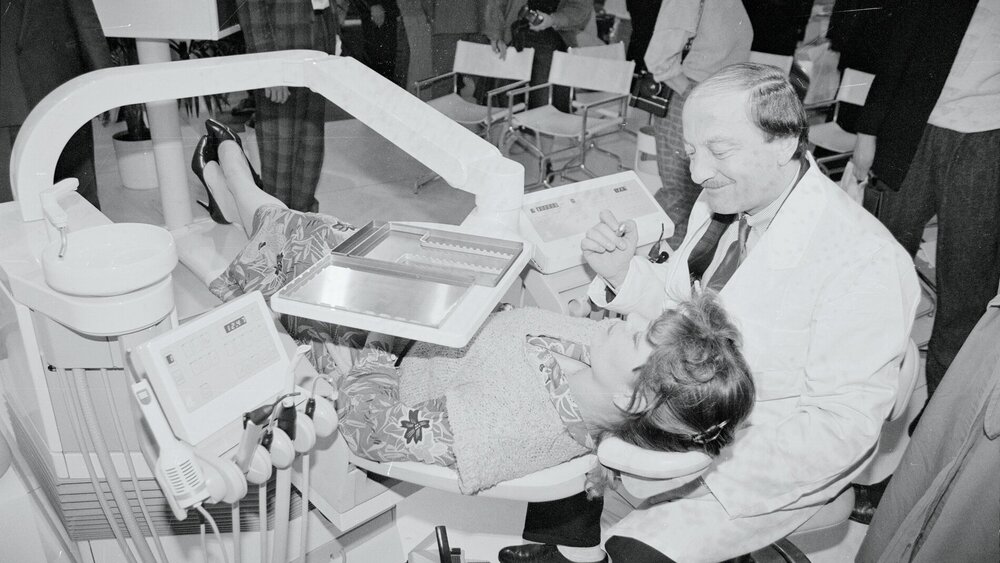 Die Messe 1956 in München brachte den ersten Durchbruch elastomerer Abformwerkstoffe, mit denen dann besonders die Kronen- und Brückentechnik stark verbessert wurde. Eine Firma aus den USA demonstrierte ein Sandstrahlgerät für Zahnpräparationen, das aber schnell wieder in der Versenkung verschwand, bis 1992 erneut versucht wurde, kinetische Energie zu nutzen, ohne aber die konventionelle Präparationstechnik ablösen zu können. Motorbetriebene Patientenstühle waren der letzte Schrei.
