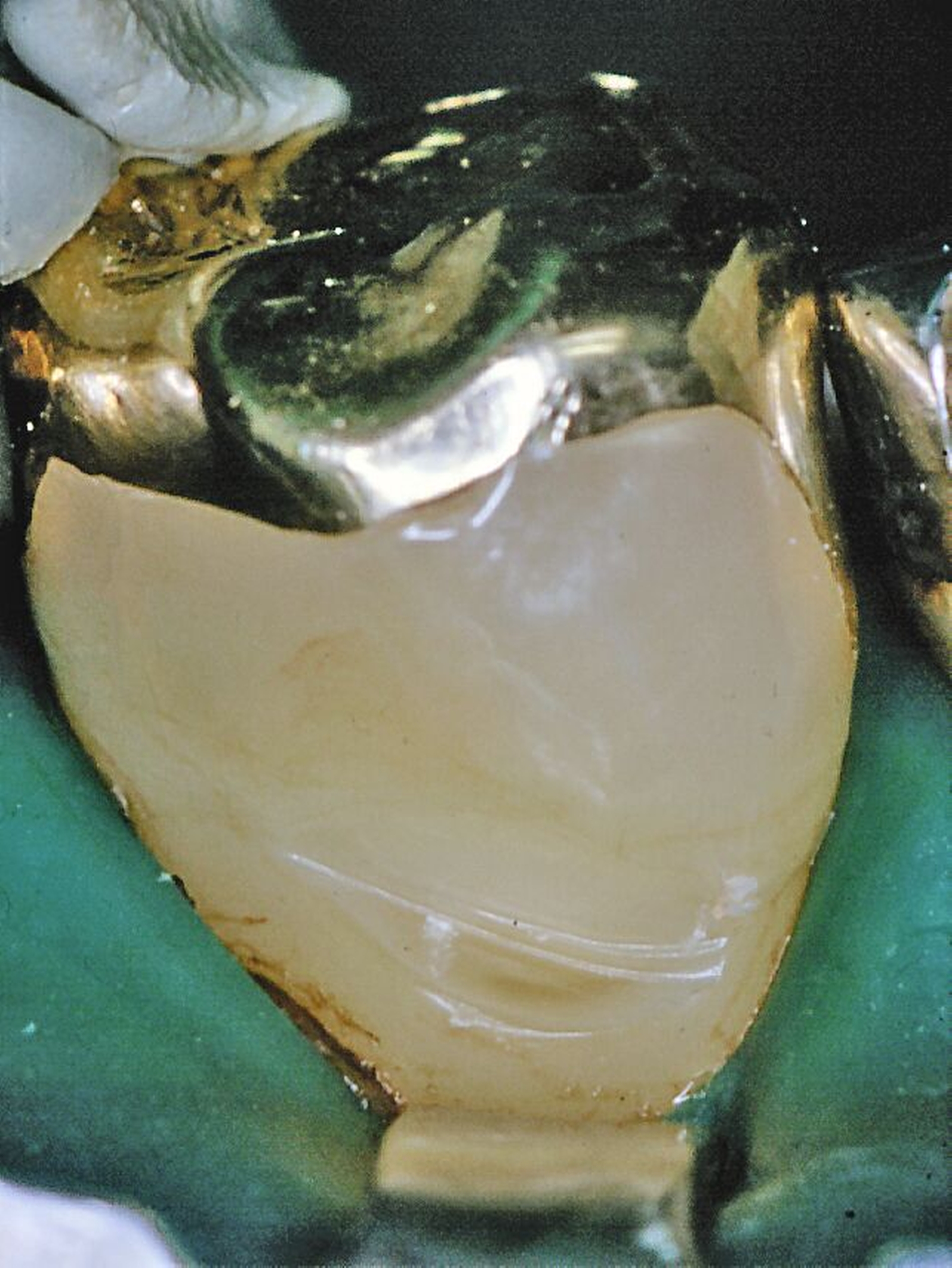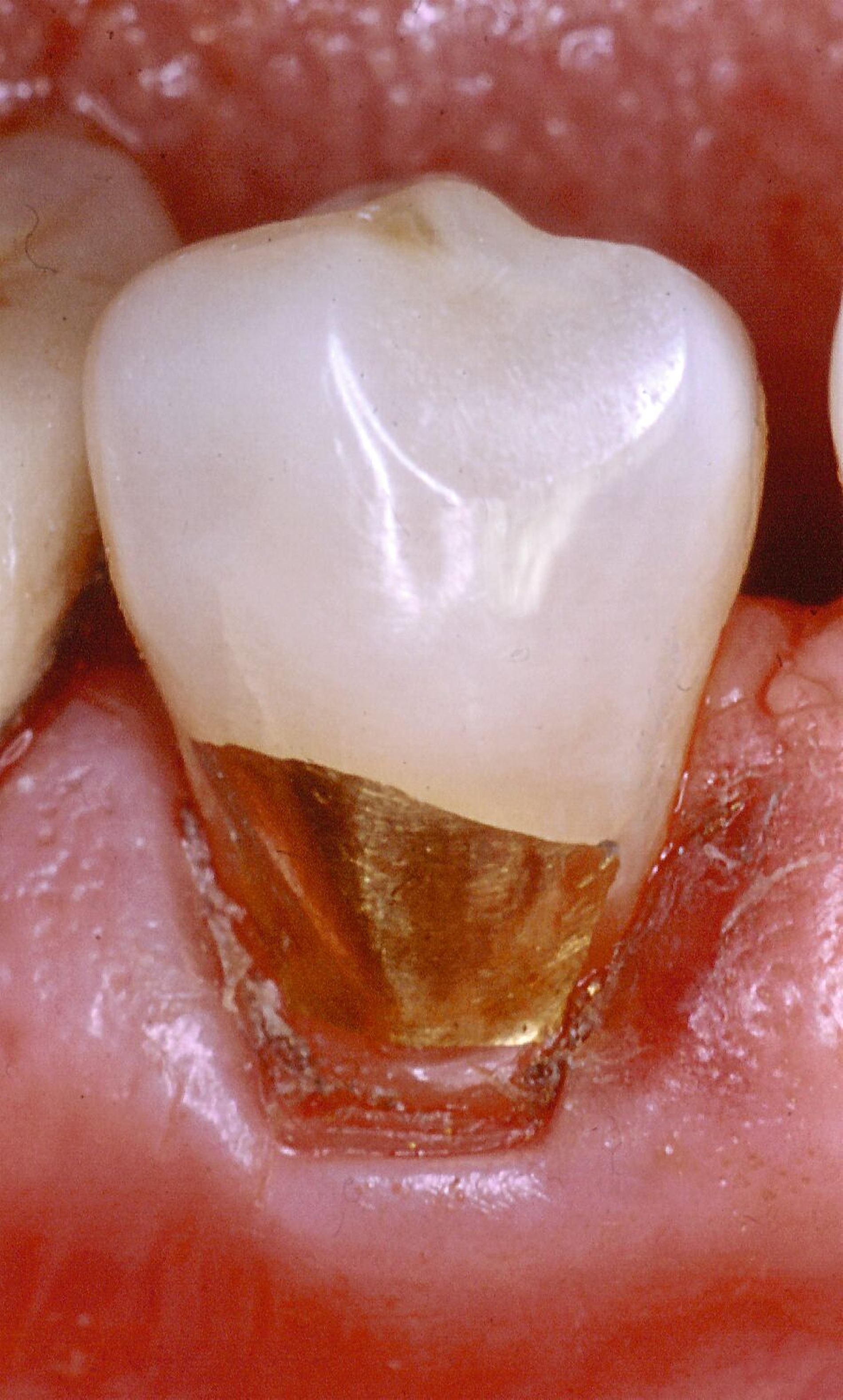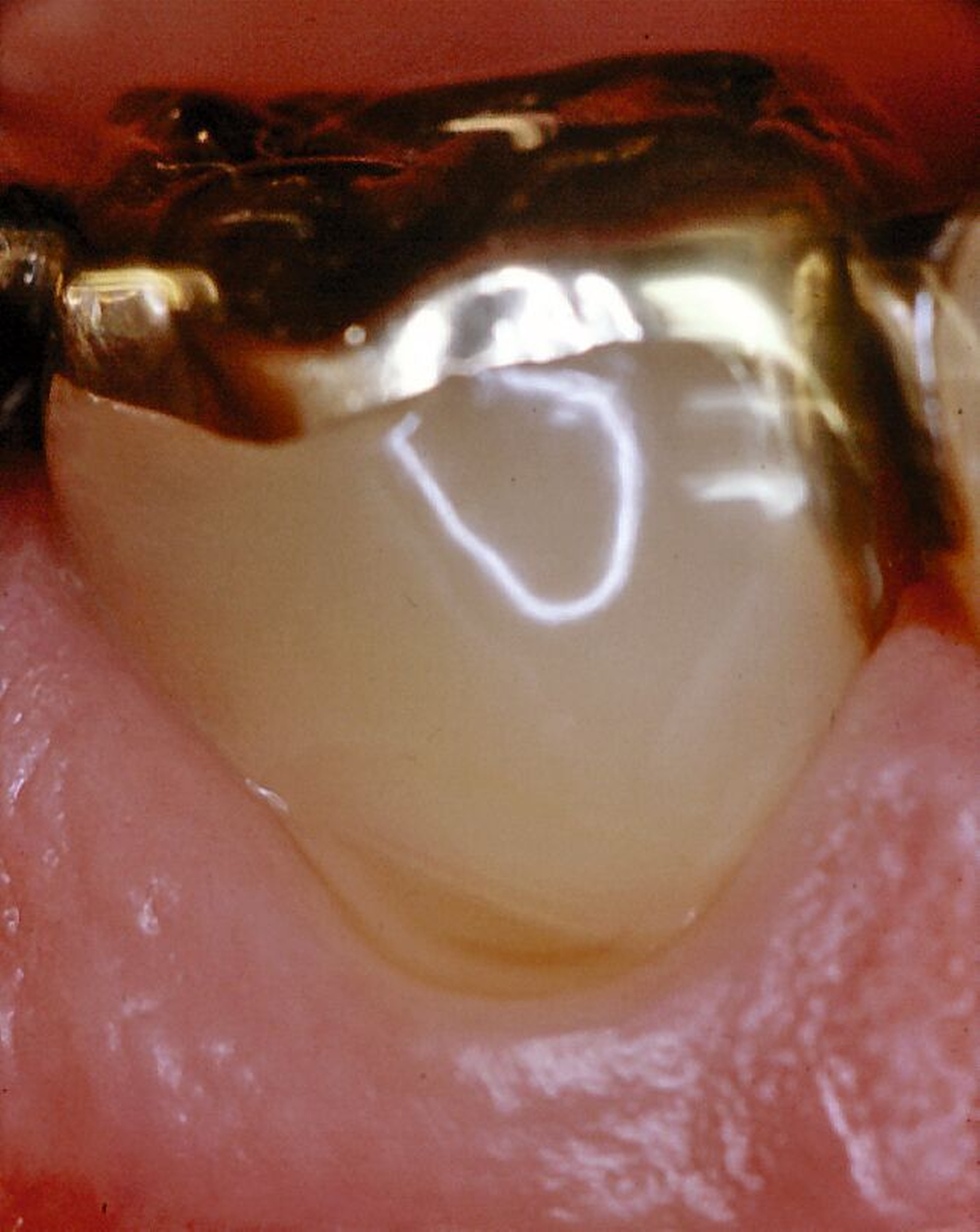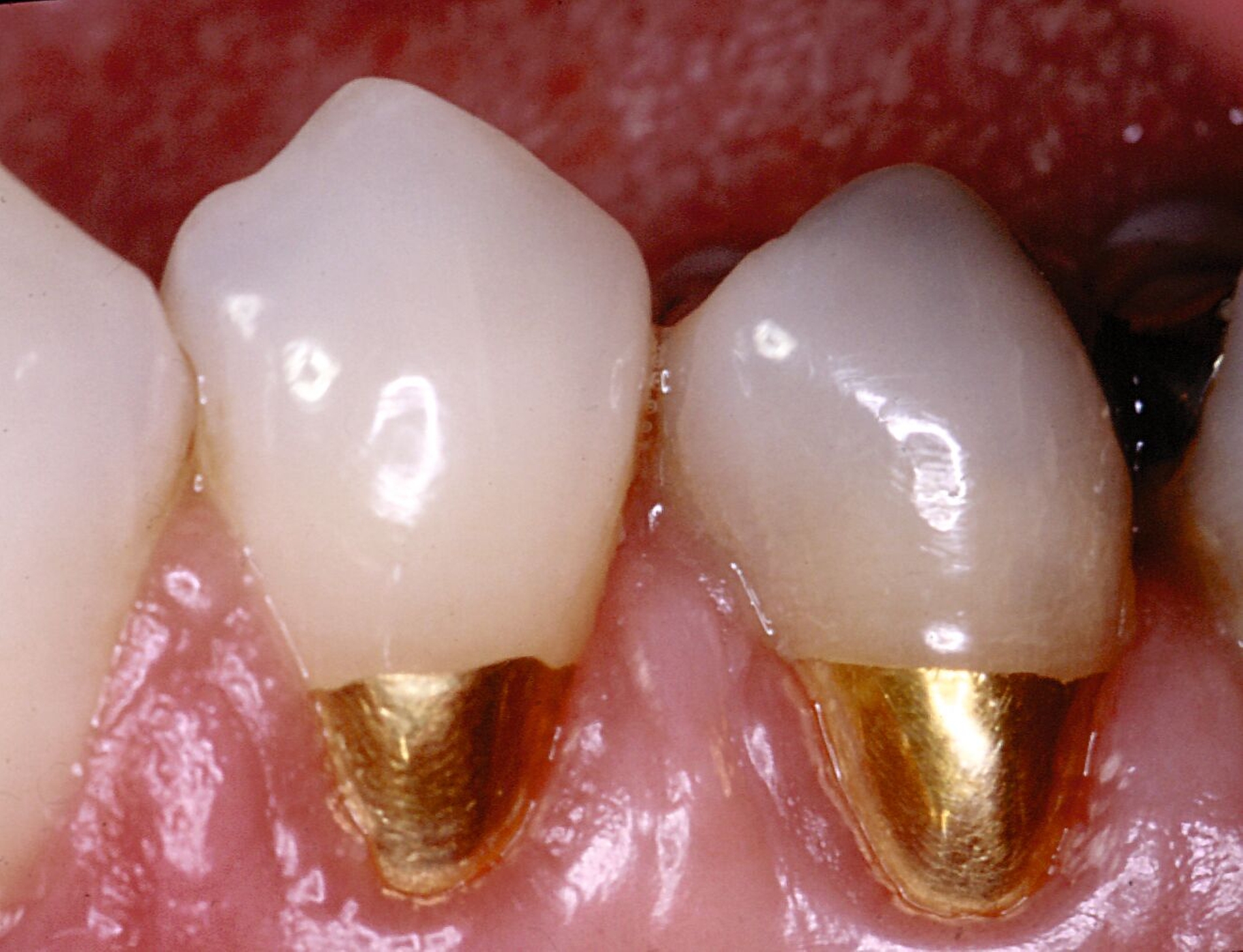 Eine Kontamination während der Kondensation führt zum sofortigen Misserfolg, da sich die einzelnen Goldlagen nicht mehr miteinander verbinden. Heute werden im Wesentlichen zwei Materialarten verwendet: die Goldfolie und das E-Z- oder auch Easy Gold (Loyd Baum Dental Center, Loma Linda, USA).