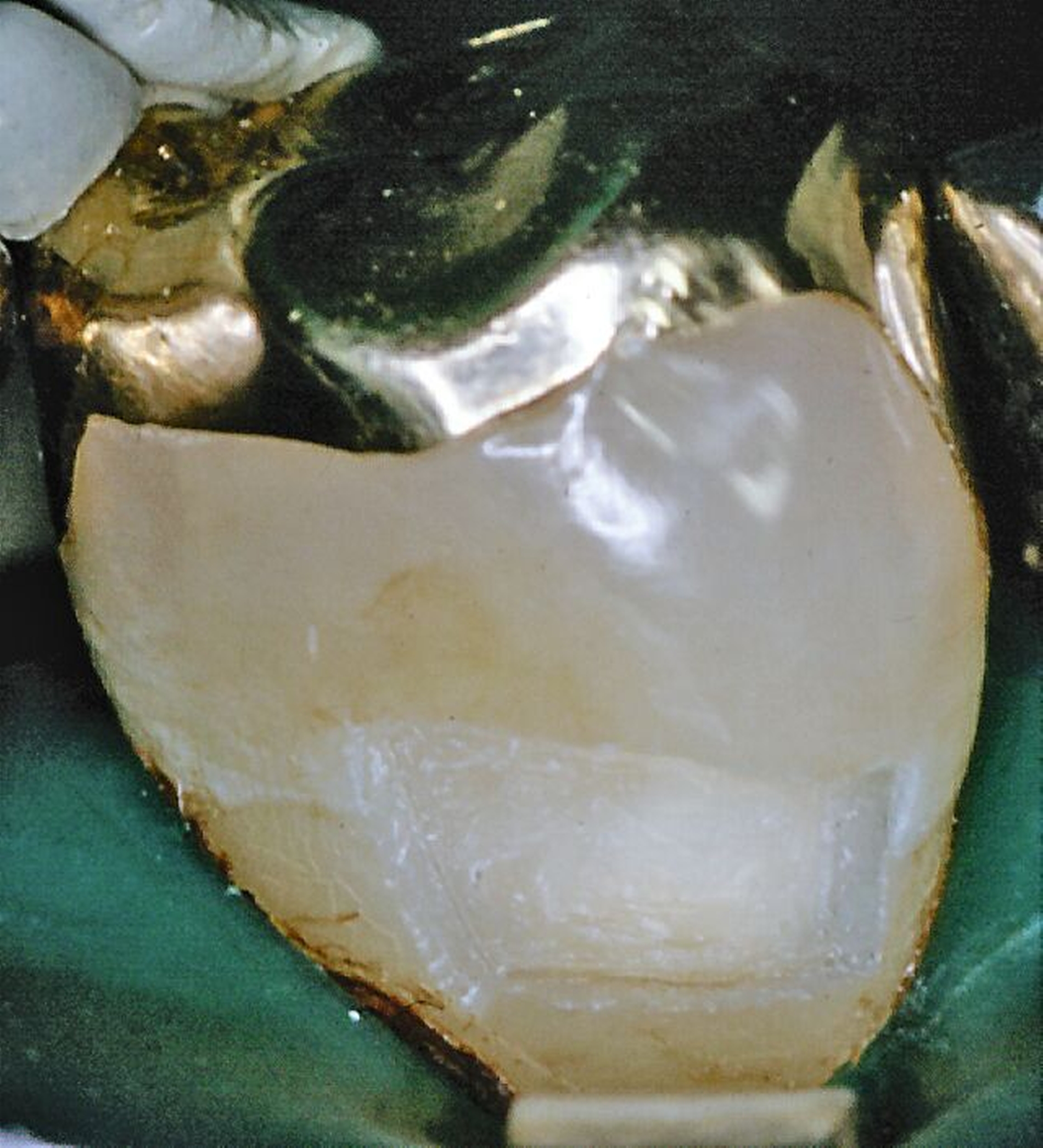 Je größer die Kavität, desto präziser müssen die retentiven Bereiche herausgearbeitet werden. Bei okklusalen und Klasse-II-Kavitäten sollten eine Modellanalyse, die Transillumination und eine Bissflügelaufnahme zum Ausschluss einer approximalen Karies der eigentlichen Therapie vorausgehen. Die durch die Präparation mit rotierendem Instrumentarium aufgelockerte Schmelzschicht zirkulär am Kavitätenrand wird mit Handinstrumenten gebrochen. Eine eindeutige äußere Kavitätenform erleichtert das spätere Auffinden und Darstellen der Präparationsgrenze ohne Schmelzaussprengungen. Eine fehlerhafte Retentionsform führt im Unterschied zu anderen Füllungsmaterialien zum sofortigen Füllungsverlust, meist schon der ersten Goldlage.