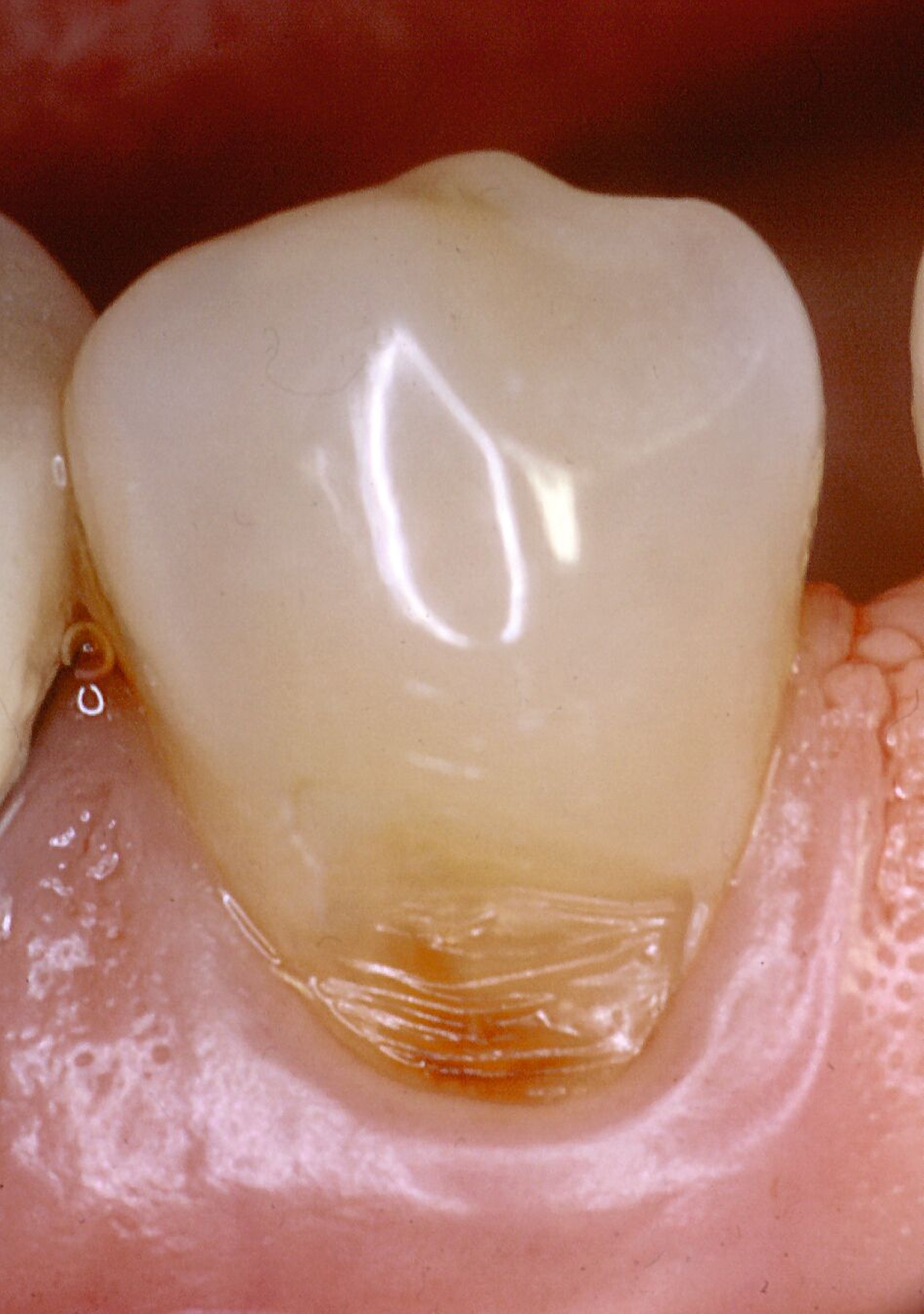 Die dentinähnliche thermische Expansion und die gute Gewebeverträglichkeit kommen besonders bei Klasse-V-Kavitäten zum Tragen: Mikrobiegungen im Zahnhalsbereich werden toleriert und die Gingiva wächst teilweise über den Füllungsrand nach inzisal.